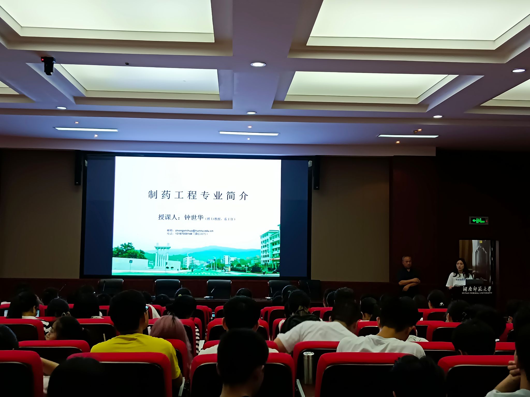 在此次介绍会中,钟世华从六个方面为同学们逐一介绍了制药工程专业相关情况,其中有制药工程专业简介、本科人才培养方案、应届考研录取一次性就业率统计、优秀人才示例、本科教育同行比较以及就业前景。最后进行提问互动环节,由在场同学举手提问,钟世华逐一回答。在介绍环节,钟世华辩证看待化工院制药专业优缺点,例举制药专业在考研、就业方面的优势,以及在师资、硕博设点等方面的不足;同时,列举入每年平均制药专业毕业人数与市场需求的具体数据,说明制药专业市场缺口大,就业前景较好;同时也提出:希望同学们提升本领,为社会做出更大贡献。在提问互动环节,钟世华针对同学们的问题,介绍了制药工程与药学专业的不同之处;同时做了实习以及具体就业情况的具体介绍。