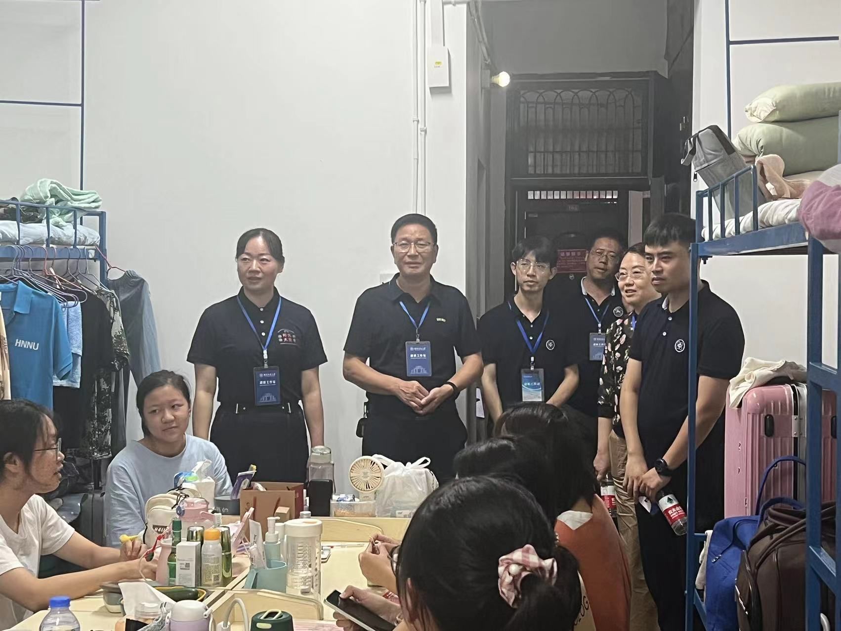 (通讯员 刘耘亦 任天阔)9月15日下午,英国365集团党委书记谭东波、党委副书记段婷、院长助理马元鸿、专职组织员梁艳芳、2020级辅导员欧阳唯一、2022级辅导员谢云霞、2023级本科新生辅导员唐健清、学工办老师向兴坤及助理辅导员下寝看望2023级本科新生,了解同学们的住宿及生活情况。