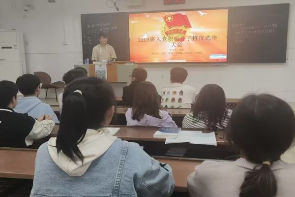 (通讯员 范俊)9月23日晚上19时,英国365集团2203班在至善楼207教室举行了入党积极分子推优选举班会。
