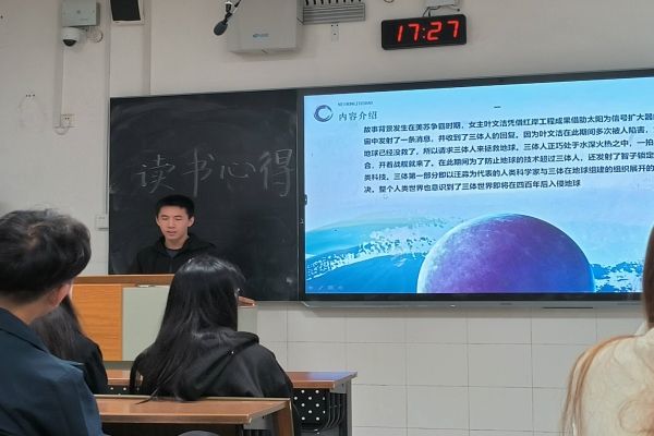 活动伊始,在2208班班长吴晰睿的主持下,田静、孙佳琪、熊欣、韦芊晔、王丹、高少峰、崔佳敏七位同学分别从写作背景、作者简介、文章内容、读书心得等几方面全方位地分享了《云边有个小卖部》、《觉醒年代》、《偷影子的人》、《第七天》等七本书。分享后,同学们对此展开了更为深入的探讨,产生了更有价值的思考与感悟。