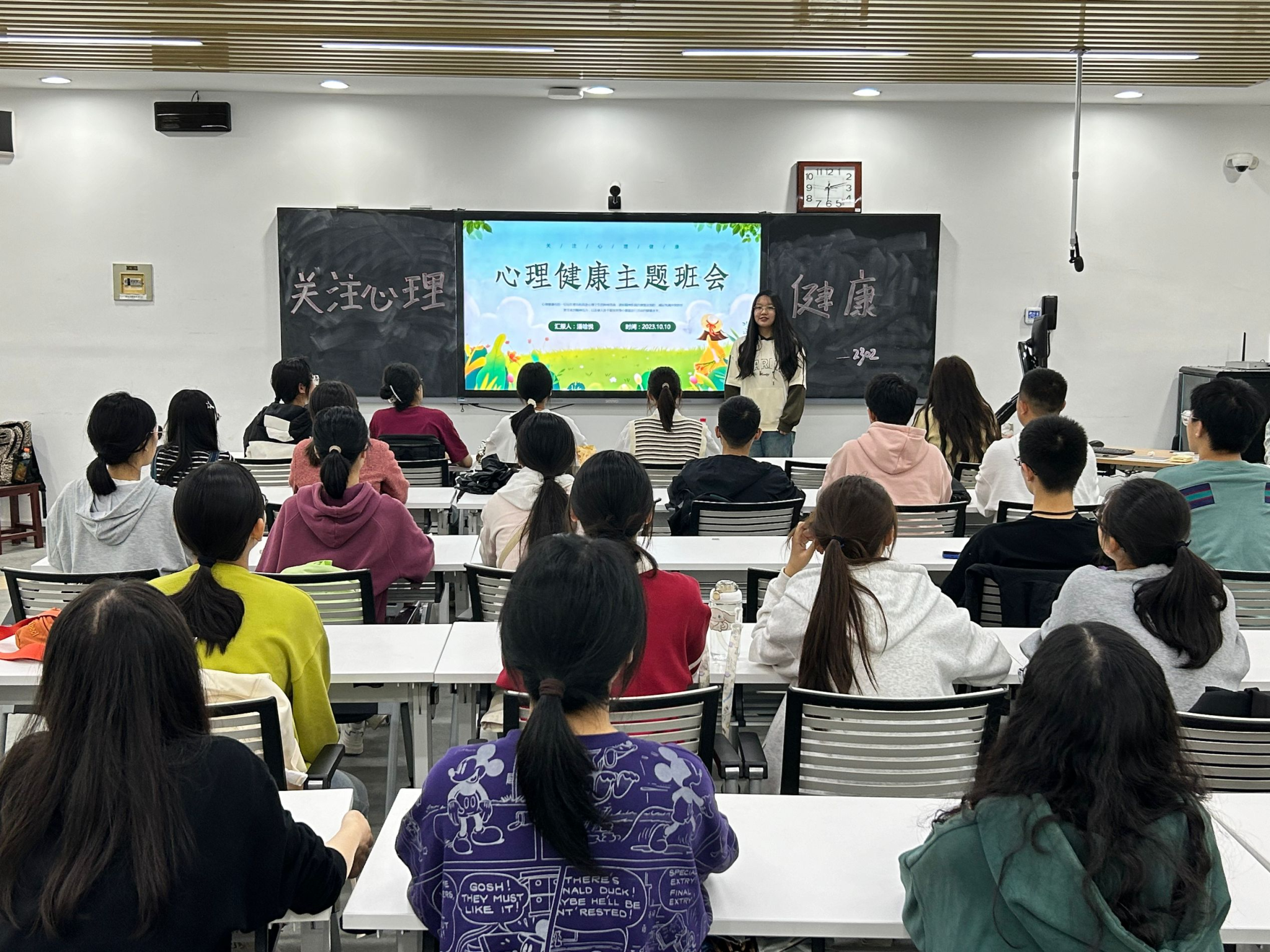 此次班会,让学生对心理健康的定义有了更清晰的认识,给学生传递了珍爱生命、拥抱阳光、心向未来的观念,教导学生如何预防与应对心理问题,对营造积极向上的大学环境起到了积极作用。