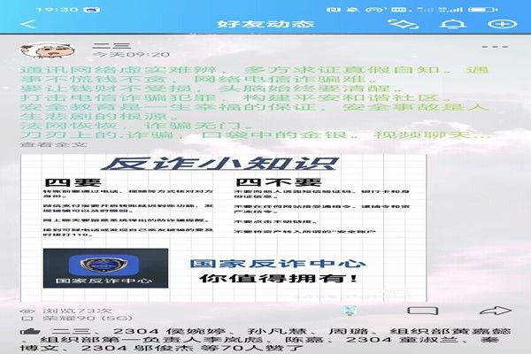 在打卡期间,各位志愿者积极表达自己的看法,宣传防范诈骗的知识,让更多人了解网络诈骗的形式,促使更多人提高网络安全意识。在线下活动中,阳翔进行预防电信诈骗宣讲,讲述了什么是电信诈骗和如何预防电信诈骗。随后,由志愿者们提供预防电信诈骗的一些建议并表演预防电信诈骗的情景短剧,进一步加强观众的防诈骗意识。