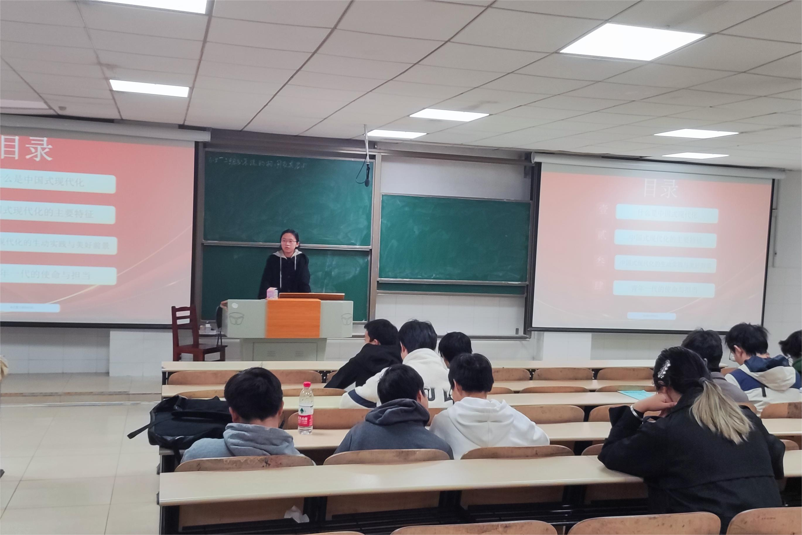 通过此次团课,同学们了解到,中国式现代化是人口规模巨大的现代化、全体人民共同富裕的现代化、物质文明和精神文明的协调的现代化、人与自然和谐共生的现代化,归纳总结出实现中国式现代化的本质要求是中国共产党领导,坚持中国特色社会主义,实现高质量发展,发展全过程人民民主,丰富人民精神世界,实现全体人民共同富裕。