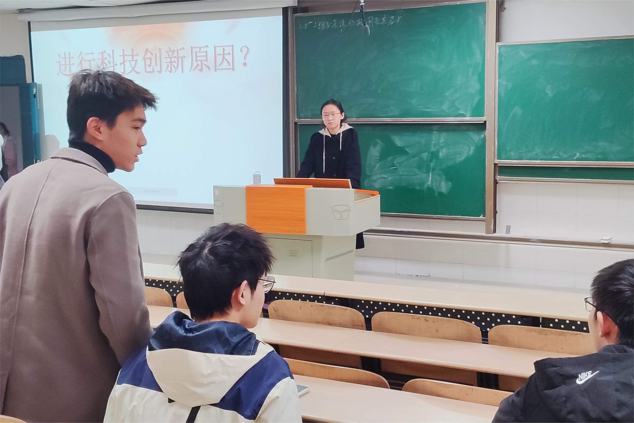 活动以视频播放、PPT展示、支部团员回答问题、团支书讲述四个形式展开,此次活动同学们积极参与,在会议期间,不少同学补充了科技创新的例子,并且积极思考,领会出了科技创新的原因:科技是第一生产力,中国的发展离不开科技的进步,科技创新已经成为综合国力的竞争的决定性因素,创新是一个民族和国家发展的不竭力量之源,科技创新是我国科教兴国战略的必然需求。