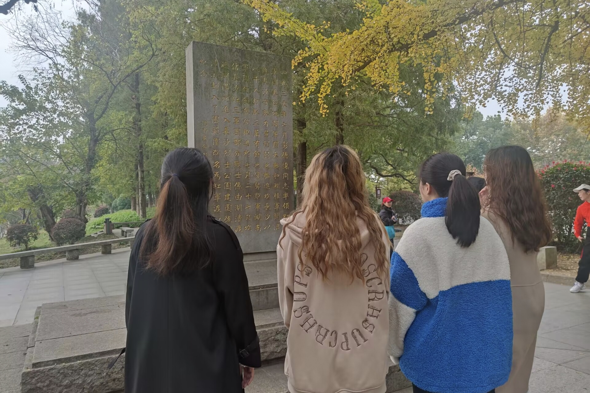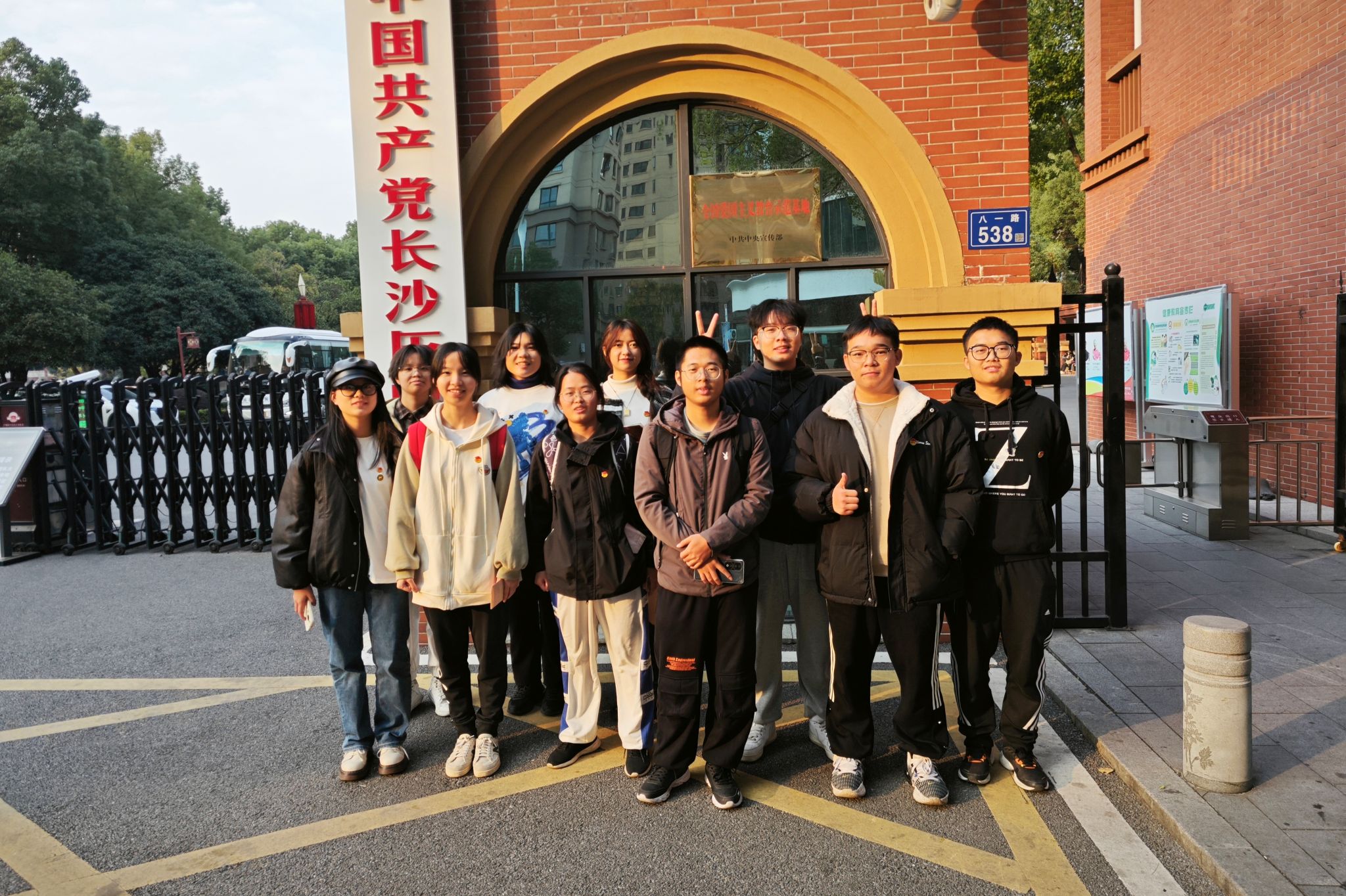 以2308团校小组为代表的六个小组前往中国共产党长沙党史馆进行学习。馆内展示了中国共产党领导长沙人民革命、建设、改革所取得的成就与经验,文化长廊中墙壁上的诗篇、党史馆内志愿者对共产党史的详细讲解以及矗立于园内的铝合金毛泽东雕像等都帮助学员们多方位地了解中国共产党的开端与发展。2203等六个团校小组参与了一场品味历史之旅。岳麓山是共产党革命火种的初燃之地,更是凝聚新时代磅礴伟力的奋进之地,各学员一路瞻仰革命圣地,深深感受先辈们立志救国的豪情壮志。2208等六个团校小组前往湖南烈士公园进行参观学习。红色潇湘,烈士公园作为一座矗立在星城大地上的精神丰碑,为奋进新征程汇聚不竭动力,是培养爱国主义精神的生动教材。通过此次实地参观学习,学员们在思想上接受了革命精神的洗礼,同时也重温了那段光辉岁月,明白了中国共产党经历怎样的磨难才走到今天,对革命艰辛历程有更进一步的认识与感悟。