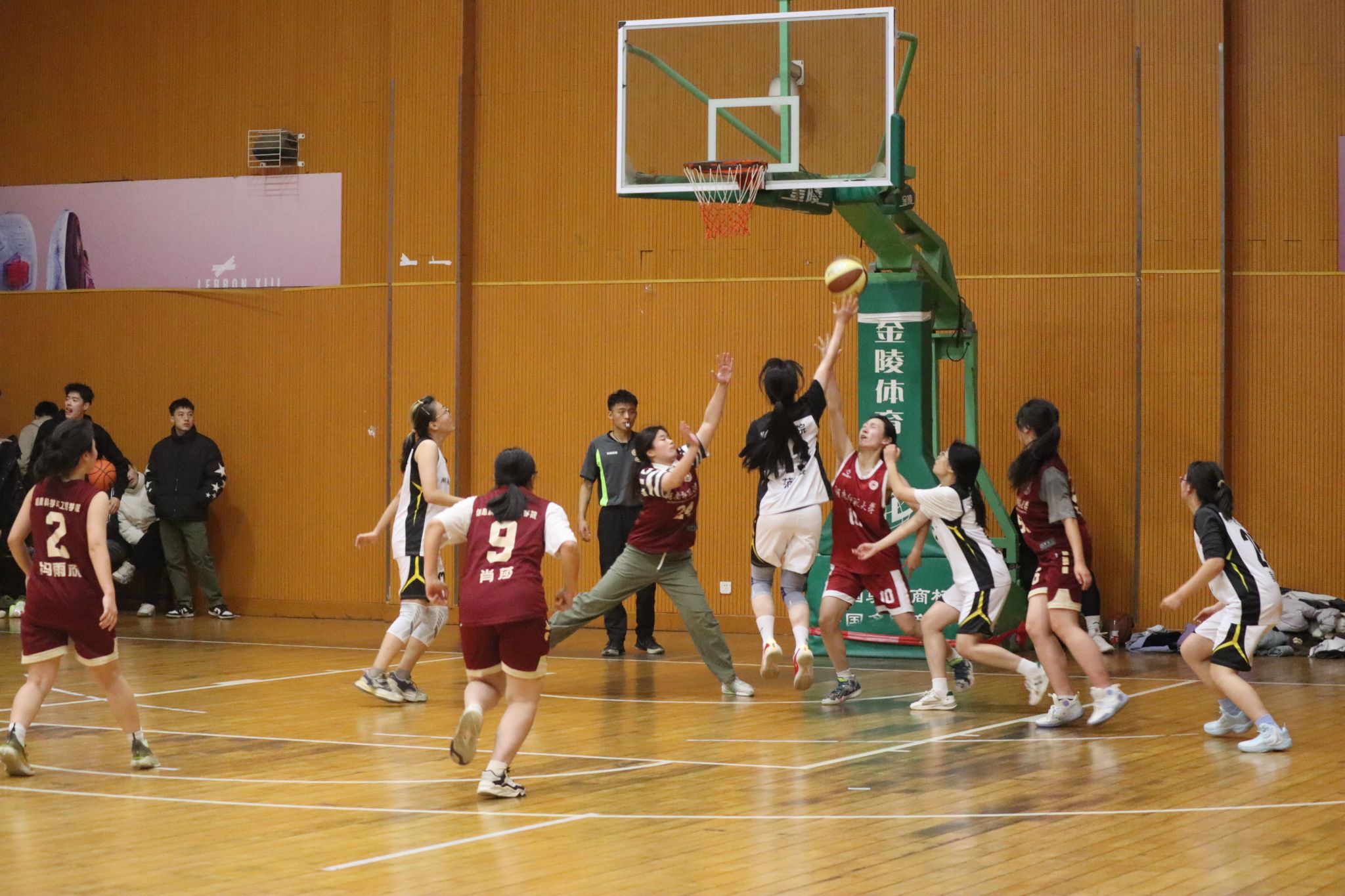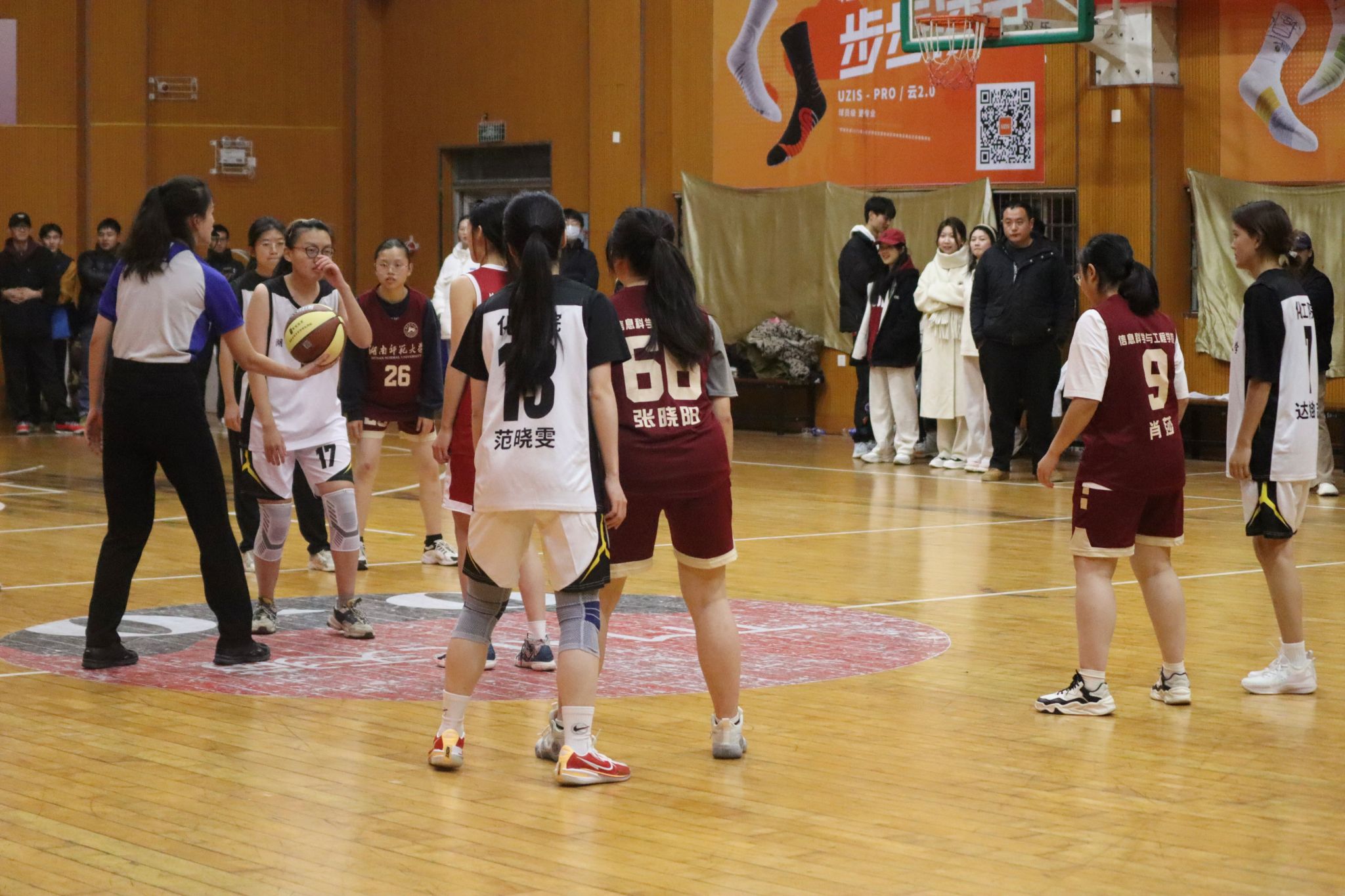 第一节比赛开始,房怡汐与信工院10号球员跳球争夺进攻机会