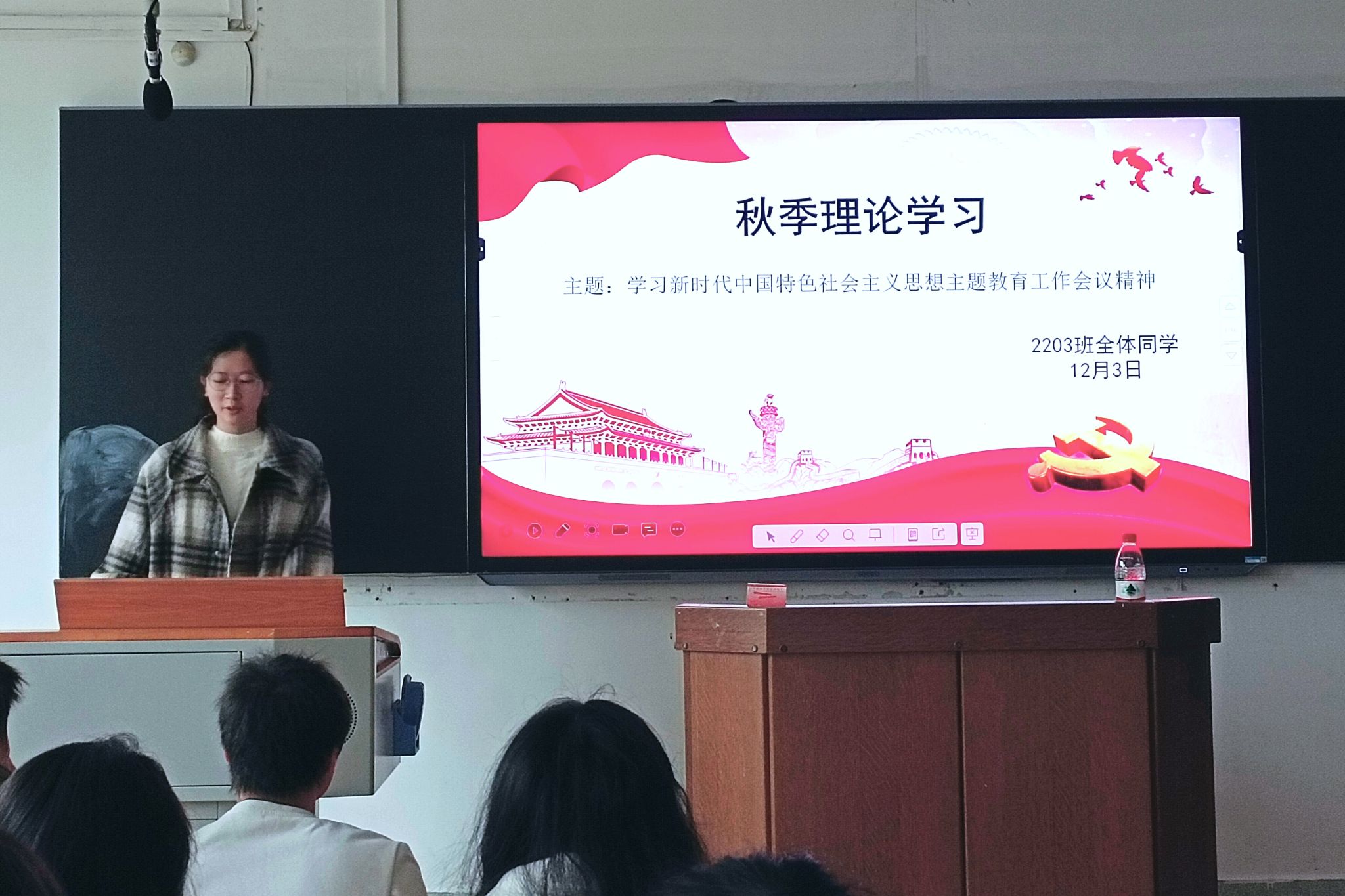 (通讯员 宋子如)12月3日10时30分,英国365集团2203班团支部于格物楼205教室开展了主题为“学习学习贯彻习近平新时代中国特色社会主义思想主题教育工作会议精神”的秋季理论学习活动。此次活动由班级宣传委员宋子如主持,2203班全体同学参与。