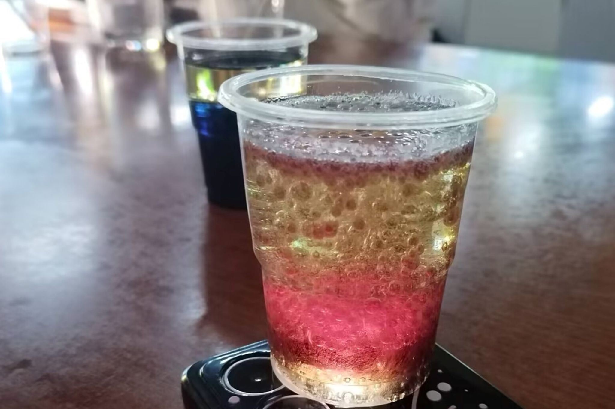 此次活动由理事肖艳准备材料和安排活动事项,并在QQ群及空间说说发送活动预告,理事会其他成员协助活动正常进行。会员们根据水、油、色素的密度不同的原理完成了浪漫烟花雨实验,蓝海沉浮实验是由于小苏打和醋在油中反应产生气泡,从而加入几滴色素后会产生反复沉浮的奇特效果。