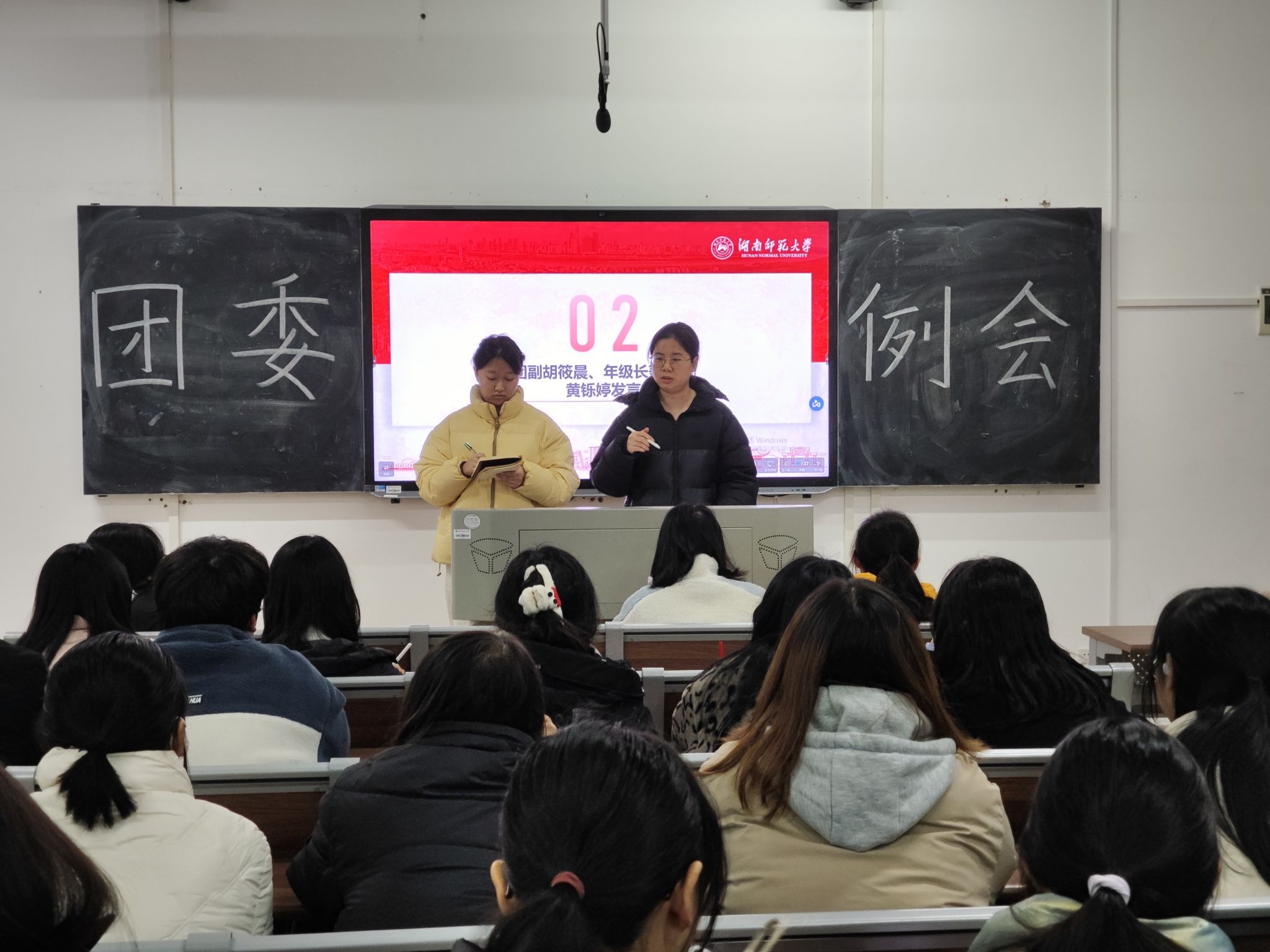 会议伊始,团委各部门代表依次进行本部门十二月工作总结,汇报近期工作计划。汇报完毕后,年级长兼团委学生副书记黄铄婷进行发言,对各部门工作情况进行例行询问,特别关注了青工部“青年志愿者精神宣讲会”的相关筹备工作,提出要落实好宣讲会场地及设备设施,确保宣讲会顺利进行。团委学生副书记胡筱晨进行补充,指出各部门工作存在的问题,提出端正态度、认真工作的要求。此后,青发部干事王靖雯带领全体成员学习贯彻习近平新时代中国特色社会主义思想主题教育专题学习中的“专题3:强国复兴”,介绍了实现中国式现代化的十二个战略部署举措,阐述其基本概念,并且指出这十二个战略部署举措的深远意义,提高了团委各成员的政治素养。