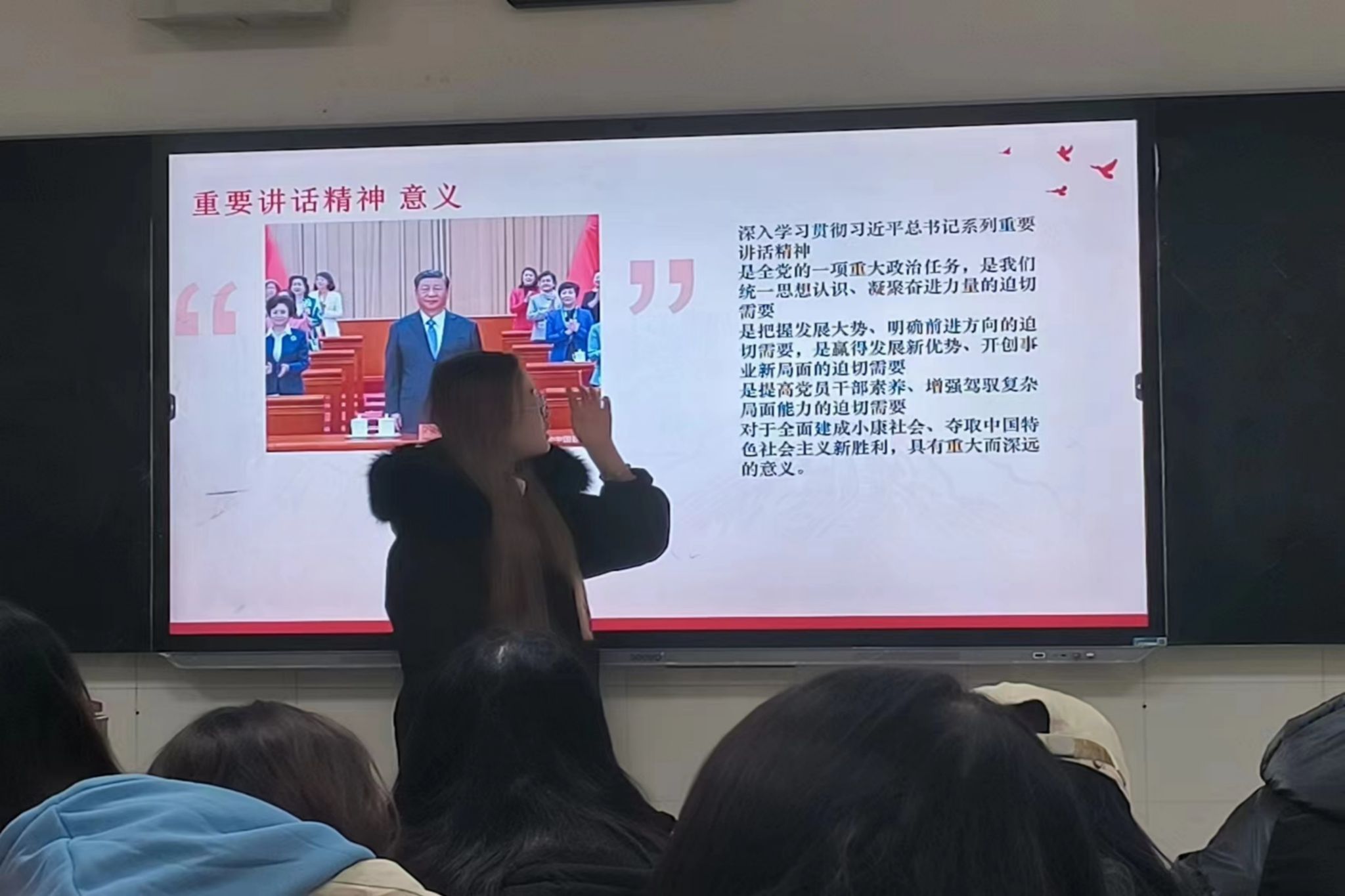 活动伊始,李彤讲述了中国共产党的发展历程,对党的光辉历史做出总结,党经历了十八次历史转折,并在错误中学习,不断完善自我。随后,李彤带领同学们学习习近平总书记在庆祝中国共产党成立100周年大会上的重要讲话,并鼓励当代青年学习党的精神,不惧怕错误,并从错误中学习经验,进而达到不断进步,完善自我的目的。最后,同学们踊跃发言表达感悟,总结经验,交流思想,深刻认识到中国共产党的历史使命,更加坚定了为人民服务的信念和信心,并决心在以后的生活学习中积极地向党组织靠拢学习。