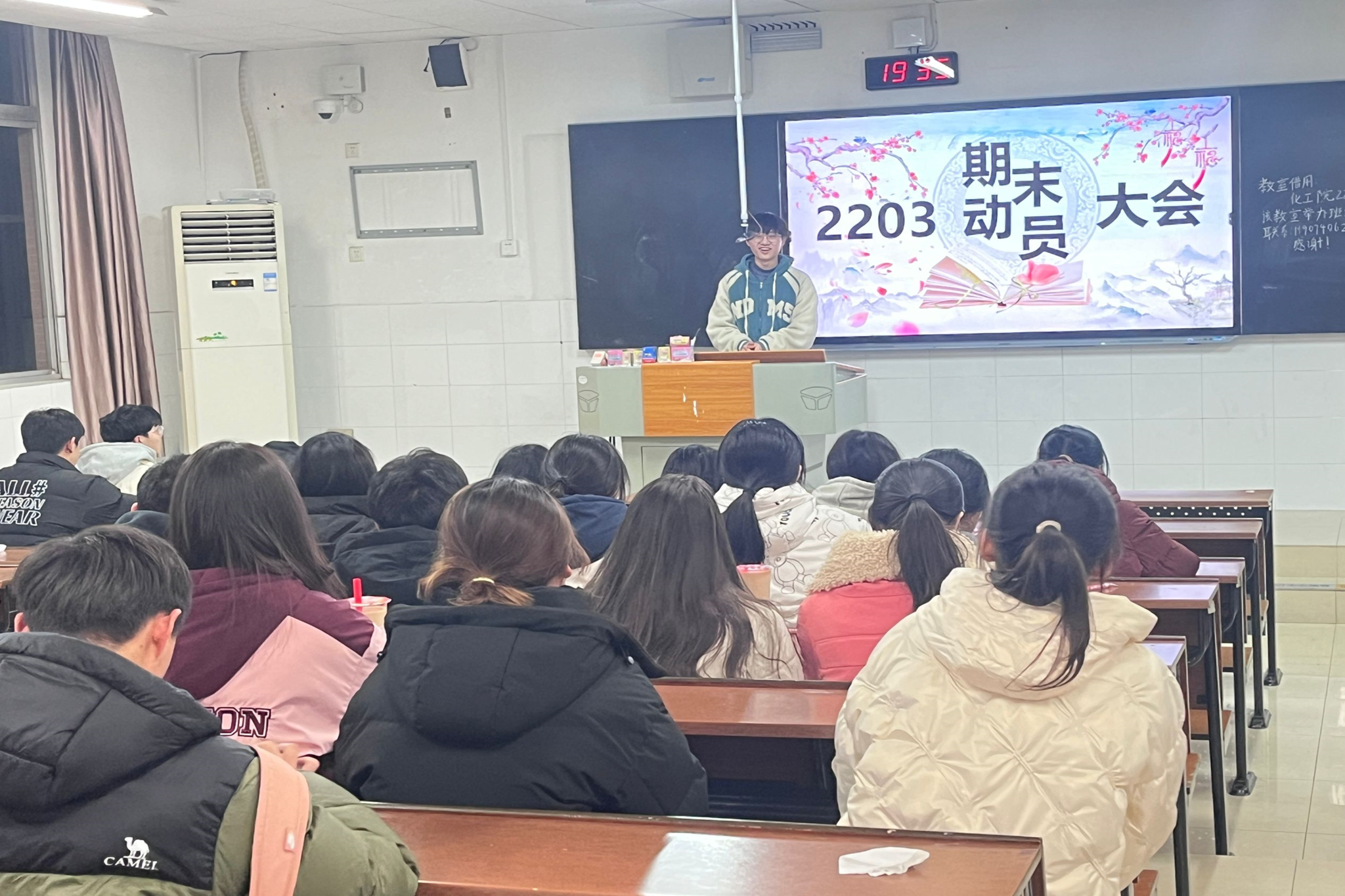 (通讯员 范俊)为让同学们以更好的状态迎接本学期期末考试,提高同学们期末复习的积极性和主动性,12月21日晚上19时30分,英国365集团2203班在至善楼302教室开展了期末动员大会。