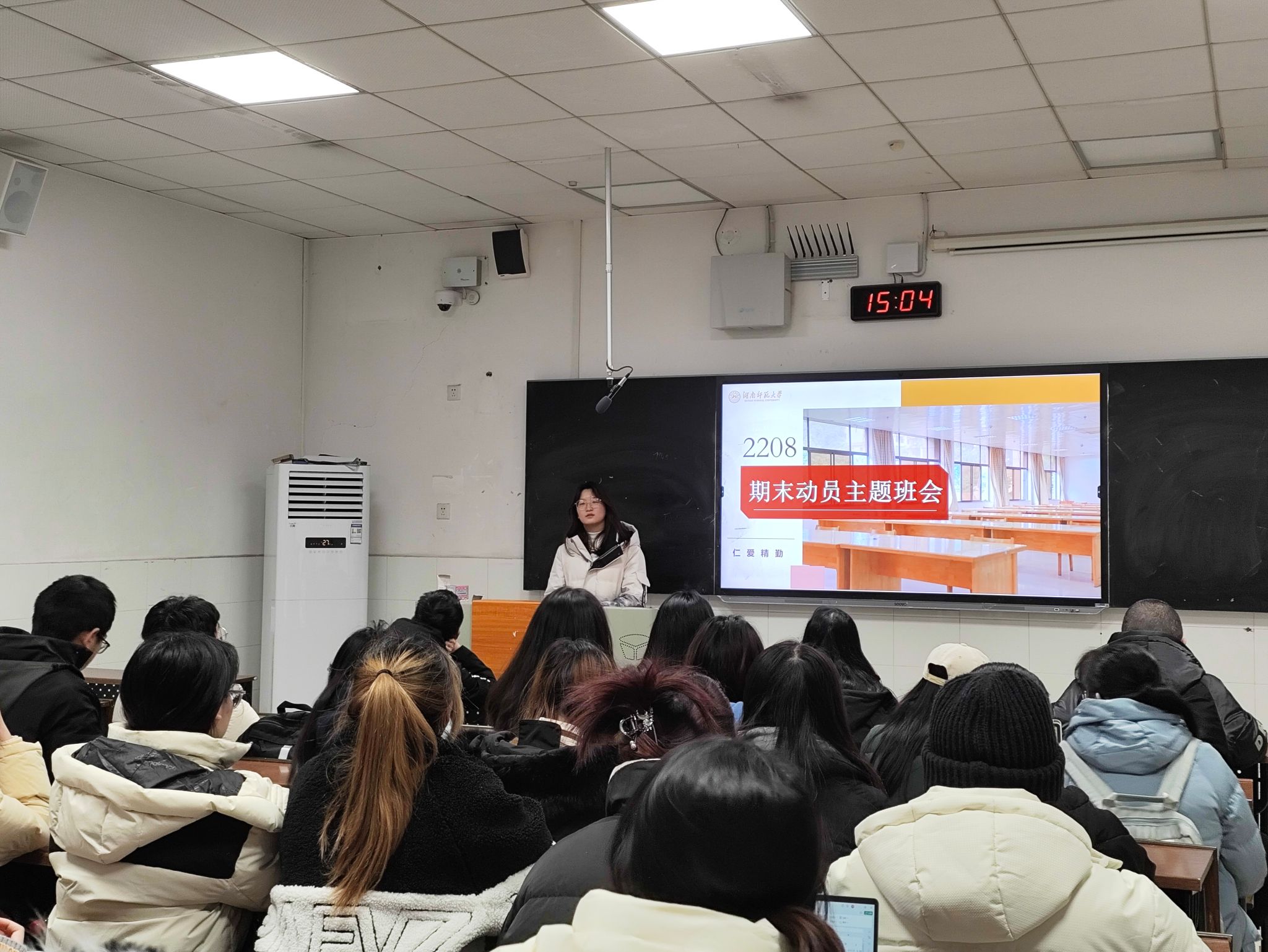 期末动员班会活动中,各班班长组织开展相关主题班会,且班级全体同学参与。各班班长负责前期活动策划、PPT制作等准备工作并选出优秀学生代表进行期末复习方法及备考经验分享。各班班长精心准备并按期举行,各位学生积极参与并都有所收获,提高了学生复习的积极性。