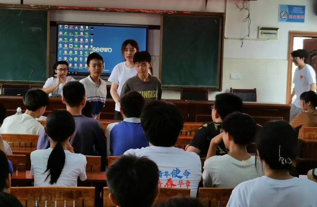 报到完毕后,实践团在报告厅开展老师及学生自我介绍活动,两位班主任进行点到后,为了促进学生之间、学生与老师之间的感情,小组长带领负责的学生进行自我介绍,通过介绍个人特长,学生对自己的同学都有了一定了解。