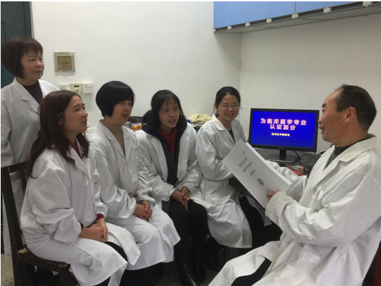 活动主题为临床专业认证动员与安排。校院领导非常重视这次临床专业认证工作,蒋校长、卢校长先后来实验室督促指导。于书记和谭亮院长分肯定了医用化学教研室老师们认真钻研教学、积极参与教研活动的精神,就医用化学应该为临床医学专业认证加分提出了具体意见,各任课教师要按照学校和医学院要求备好近一年来的教案、教学日历、实验安排、试卷复查和试卷分析等。老师们要认证学习临床专业认证宣传手册、自评报告等相关临床专业认证材料。认证工作分工:冯志明负责总体协调,撰写化工院和医用化学教研室特色简介;雷春华负责实验室卫生、临床专业基化实验和有机实验课记录、危废物处理、仪器维修和实验室安全等记录。理论课老师要求备好教案、教学日历和PPT, 实验课教师要求有板书、有示范,实验室整洁美观。认证期间要求着装整齐、全员坐班、听从指挥,保持通讯畅通。会议结束时,大家表示一定要“撸起袖子加油干”,一切听从学校和医学院部署,确保为我校临床医学专业认证加分!