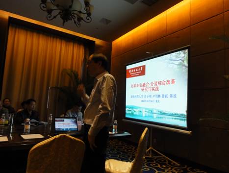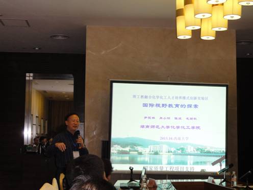 出席这次会议的代表共有371人,我院共有9人参加此次会议。会议论文集共收录243篇论文和报告,我院被收录8篇;分别是:尹笃林等《理工教融合化学化工人才培养模式实验区加强国际视野教育的一些实践》、肖小明等《化学专业融合-分流培养综合改革研究与实践》、马铭等《在高等院校开展双语教学的实践与思考》、毛丽秋等《化学研究设计性实验教学中提高学生五会能力的研究与实践》、李谦和等《分离工程课程体系的构建与互动式教学实践》、孟勇等《加强平台建设促进资源循环科学与工程专业人才培养》、李承志等《大学化学实验用氟离子选择电极的再生处理研究》、李羽珍等《全日制化学教育硕士研究生培养实践与思考》。