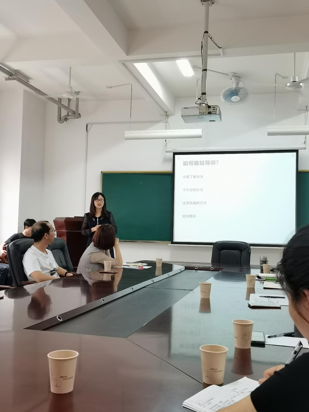 彭馨作题为“一个班导师的心里话及双语教学中的反思” 汇报。她介绍了作为班导师应该加强与学生之间的交流,引导学生自主建立学习和思考意识,强调一个班导应该具有“䁔”心,做一个有温度的老师。她还通过自己教学的经验,对双语教学进行反思,特别是以元素周期表为例,通过生动的例子让学生简单识记、背诵生涩的专业英语单词。她提出学习需要突出重点、加强各类知识之间的联系,并不断提升运用知识的能力。
