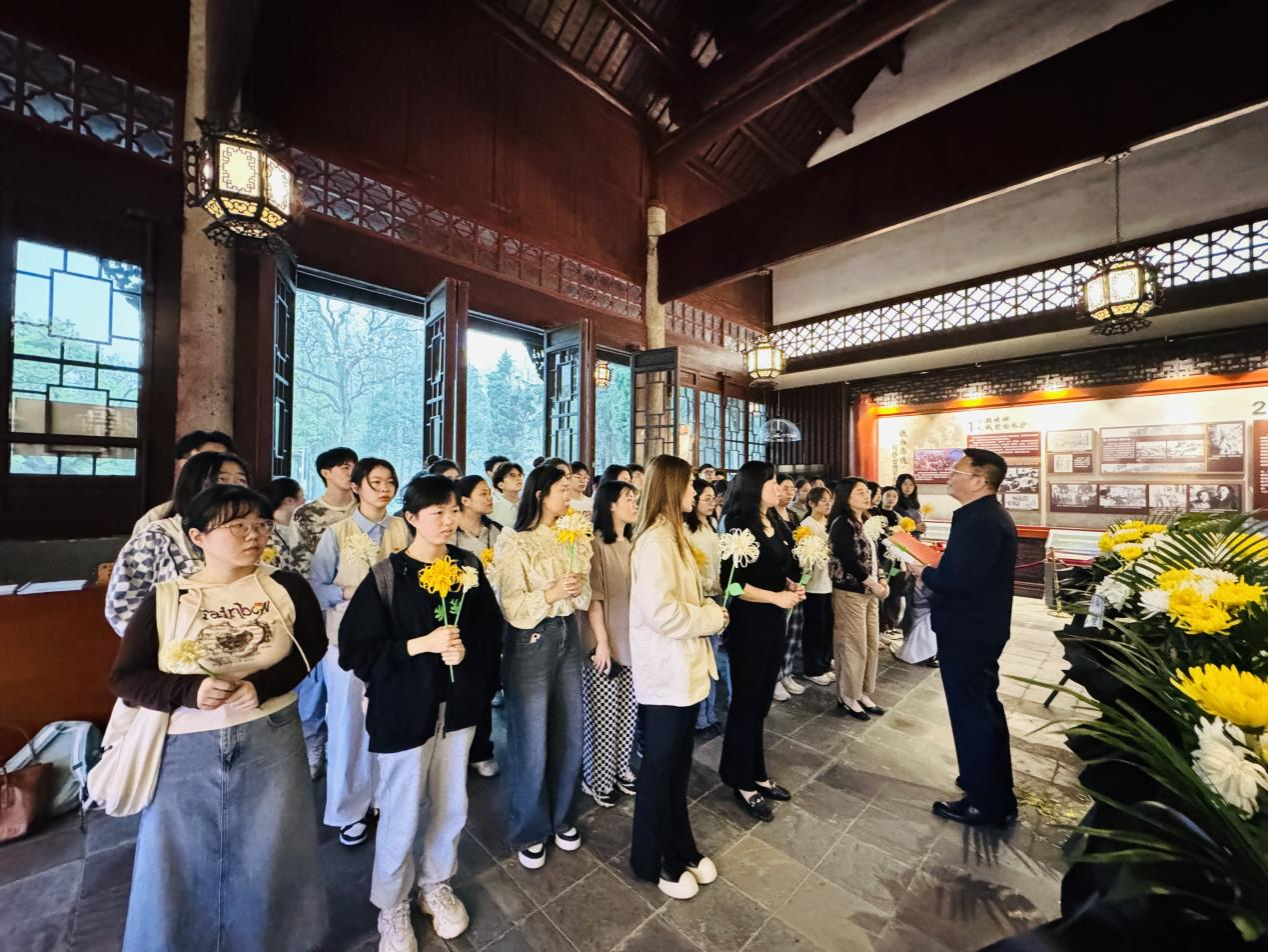 (通讯员 杨舟平)为缅怀革命先烈,弘扬爱国主义精神,4月1日上午,学院本科生各党支部前往麓山忠烈祠开展“缅怀先烈与故人 手作菊花寄哀思”爱国主义教育活动。学院党委书记谭东波、党委副书记段婷、专职组织员梁艳芳、本科生第一党支部第一书记欧阳唯一出席活动。活动由本科生第二党支部第一书记唐健清主持。