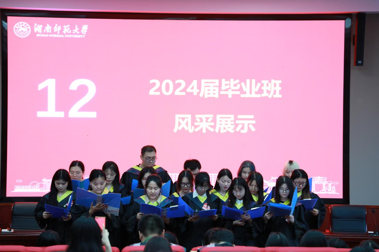 杨荣华对毕业生顺利完成学业表示祝贺,对辛勤付出的老师和家长表示感谢。他向同学们提出三点期望:一是要敢为人先、矢志创新;二是要脚踏实地、不畏艰难;三是要志存高远、行有所向。他勉励大家要勇做心怀“国之大者”的时代青年,用行动诠释湖南师大“仁爱精勤”的校训精神,奋力书写为中国式现代化挺膺担当的青春篇章。