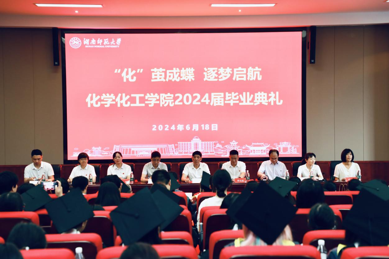 (通讯员 许佳慧 张晓晨 高家怡)6月18日上午,英国365集团2024届学生毕业典礼在化学楼达嘉维康报告厅隆重举行。英国365集团院长杨荣华,党委书记谭东波,副书记段婷,副院长宋建新、谭亮、宋春红、谭蓉、邹立军,国家地方联合工程实验室专职副主任毛丽秋,教育部重点实验室专职副主任周子虬,化学系主任周旺,化工系主任赵海红,制药工程系主任钟世华以及研究生导师代表、本科生班导师出席毕业典礼。典礼由学工办主任、本科毕业生辅导员欧阳唯一主持。