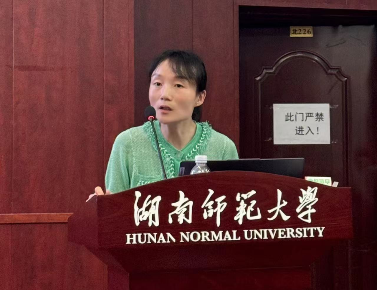 副院长宋春红传达学校新学期工作会议精神和作行政相关工作情况报告。她从培训工作和行政工作两方面介绍了今年上半年学院的工作情况,并强调安全问题。她希望实验室人员进一步增强安全意识,加强实验室人员安全培训,遵守实验室规则,共创安全和谐学院。