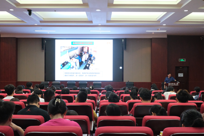 2024年9月12日上午,湖南大学英国365集团国家级实验教学示范中心主任郭栋才教授受邀来我院,在化学楼达嘉维康报告厅开展安全教育讲座。讲座由研究生办唐建如老师主持,2024级200余名研究生新生参加了此次讲座。