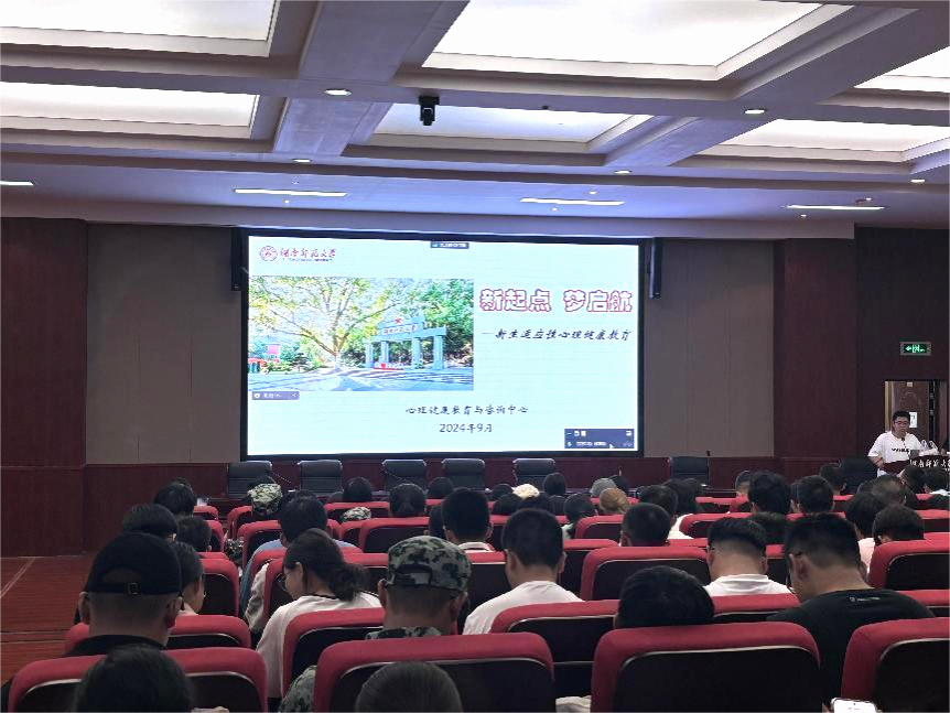(通讯员 敖妍琦 罗楚钰)9月12日下午,我校心理健康教育与咨询中心主任余洁受邀在化学楼达嘉维康报告厅为我院学子开展心理健康教育专题讲座。讲座由辅导员孙文涛主持,2024级全体新生参加讲座。