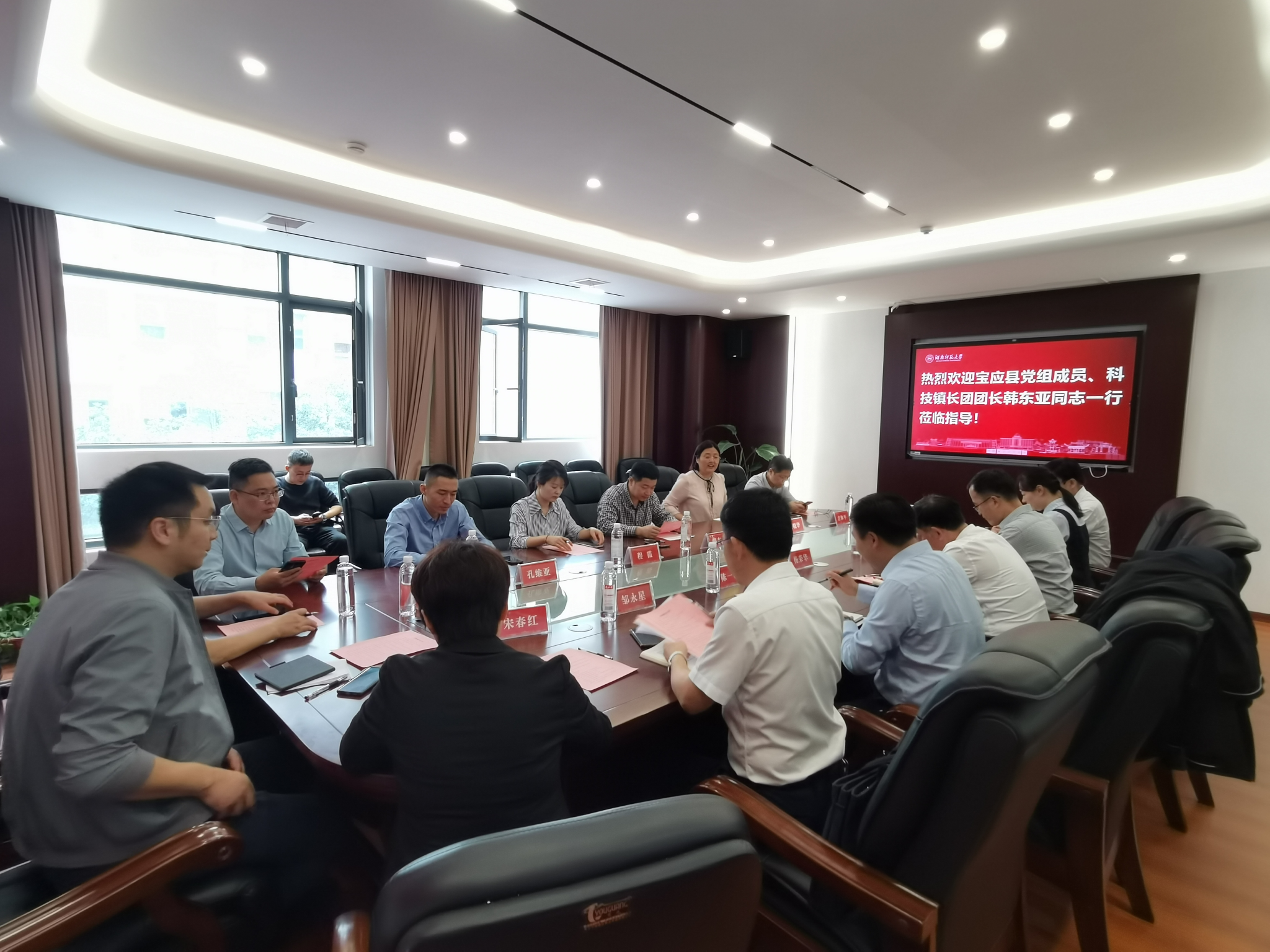 韩东亚对学院的热情招待表示感谢,并从历史,交通、生态、产业和政策等等方面介绍了宝应县的主要情况,他对杨亚辉教授在宝应县挂职科技镇长的工作表示充分肯定,并表达了想继续聘任杨亚辉作为科技镇长的愿望。