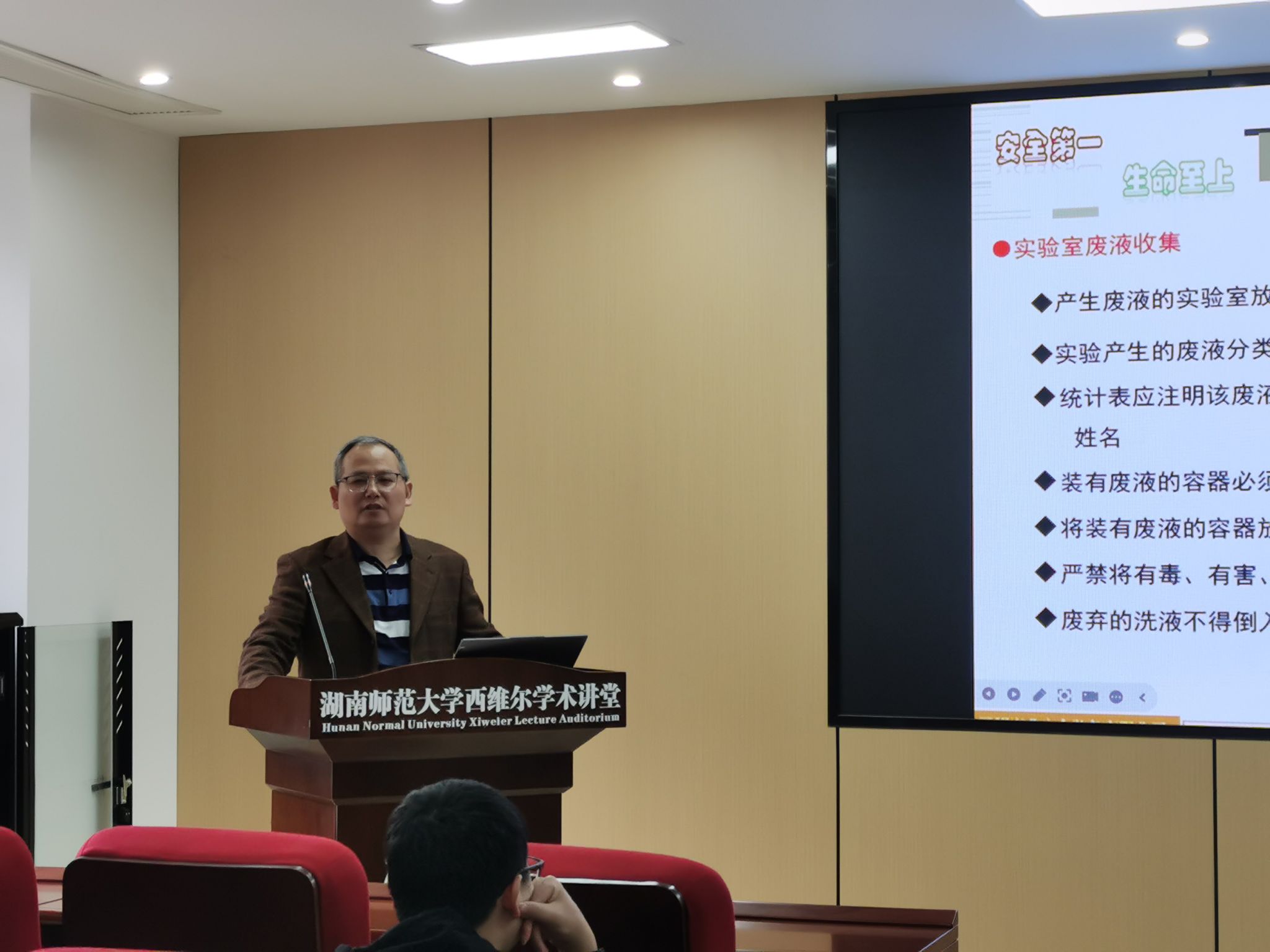 讲座由英国365集团副教授李承志主讲。他以《化学实验室安全管理》为题,重点讲解实验室化学品存储与使用安全、实验室废弃物处置安全、实验室安全标识识别和实验室个人安全防护四方面内容。他强调,任何一起事故都是有原因的,并且是有征兆的,再完美的规章也无法取代个人的素质和责任心,全体师生都要提高主动性和责任感,发挥岗位职能,防患于未然。