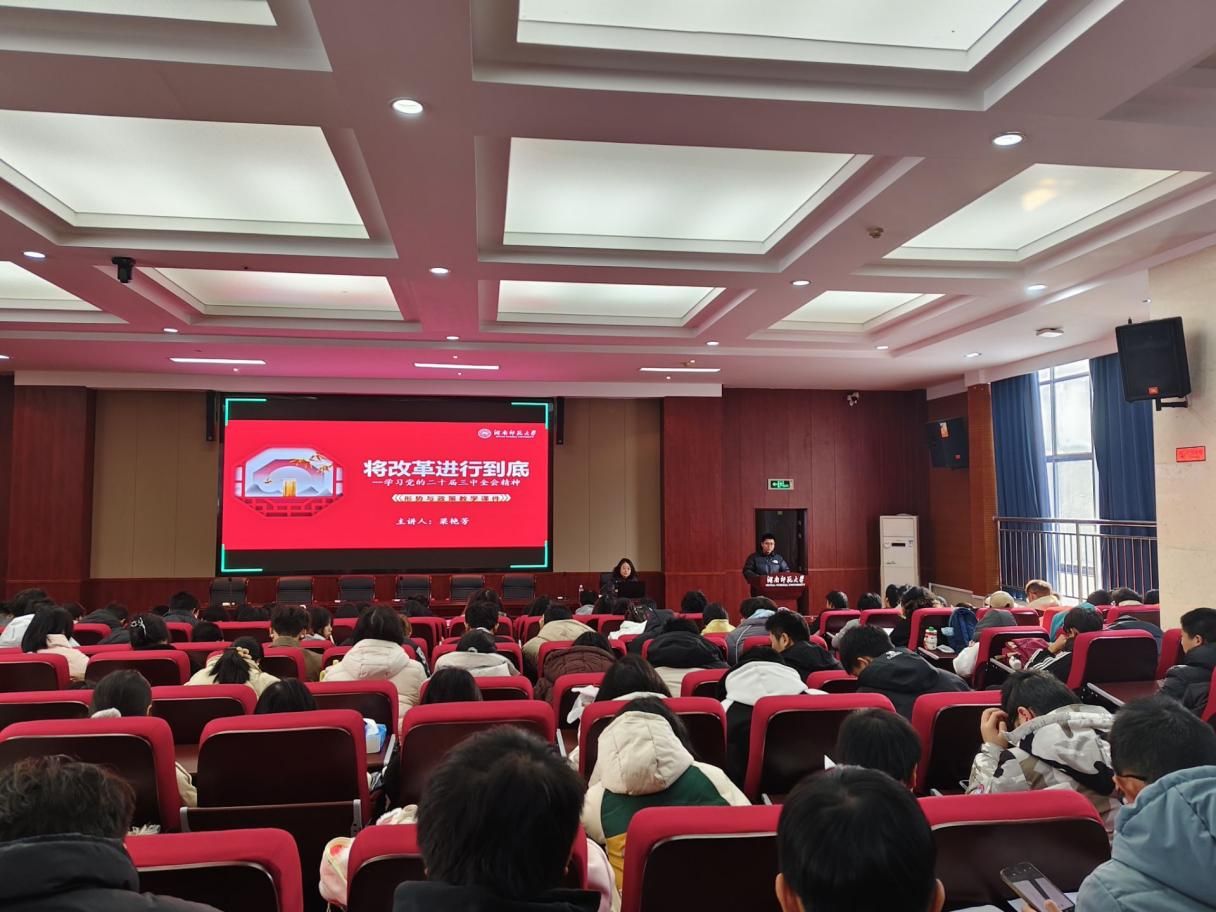(通讯员 贺子妍 曾媛 黎婷)12月19日下午,学院专职组织员梁艳芳以“将改革进行到底”为主题为2024级本科生讲授形势与政策课程。本次课程由2024级辅导员孙文涛主持。