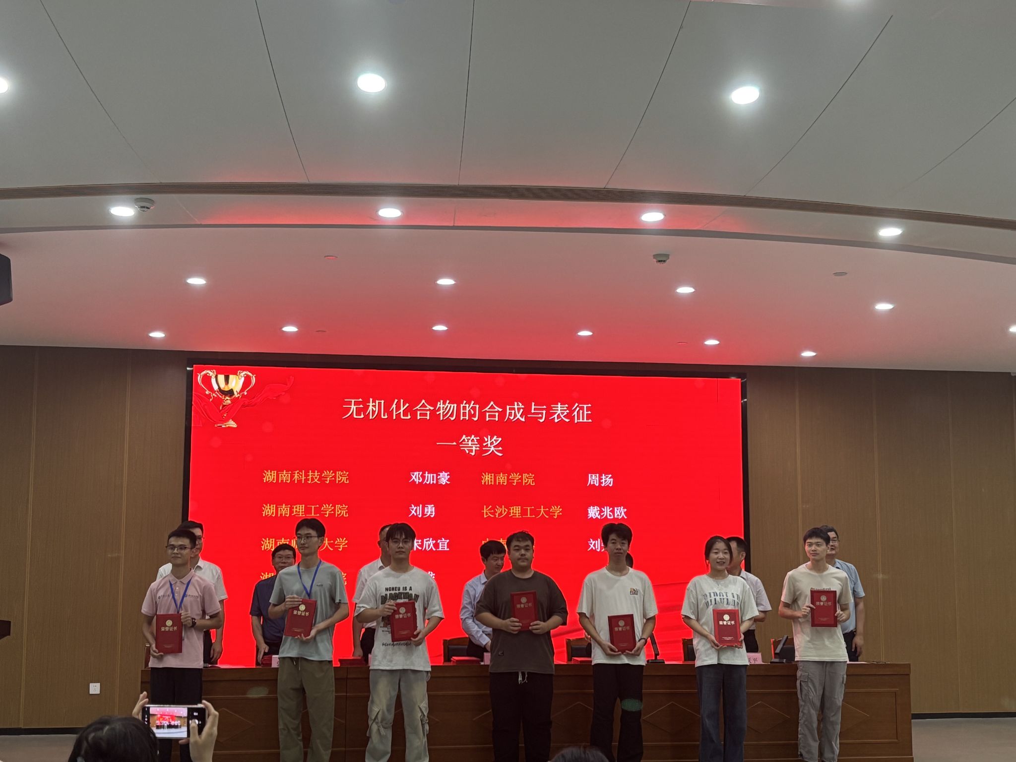 7月15-17日,第十五届湖南省大学生化学化工学科竞赛暨化学化学化工实践教学与管理研讨会在湖南理工学院举行。我院本科生共获得一等奖6项(其中实验技能2项、创新作品2项、化工设计1项、虚拟仿真1项,四类比赛全覆盖)、二等奖3项、三等奖3项。