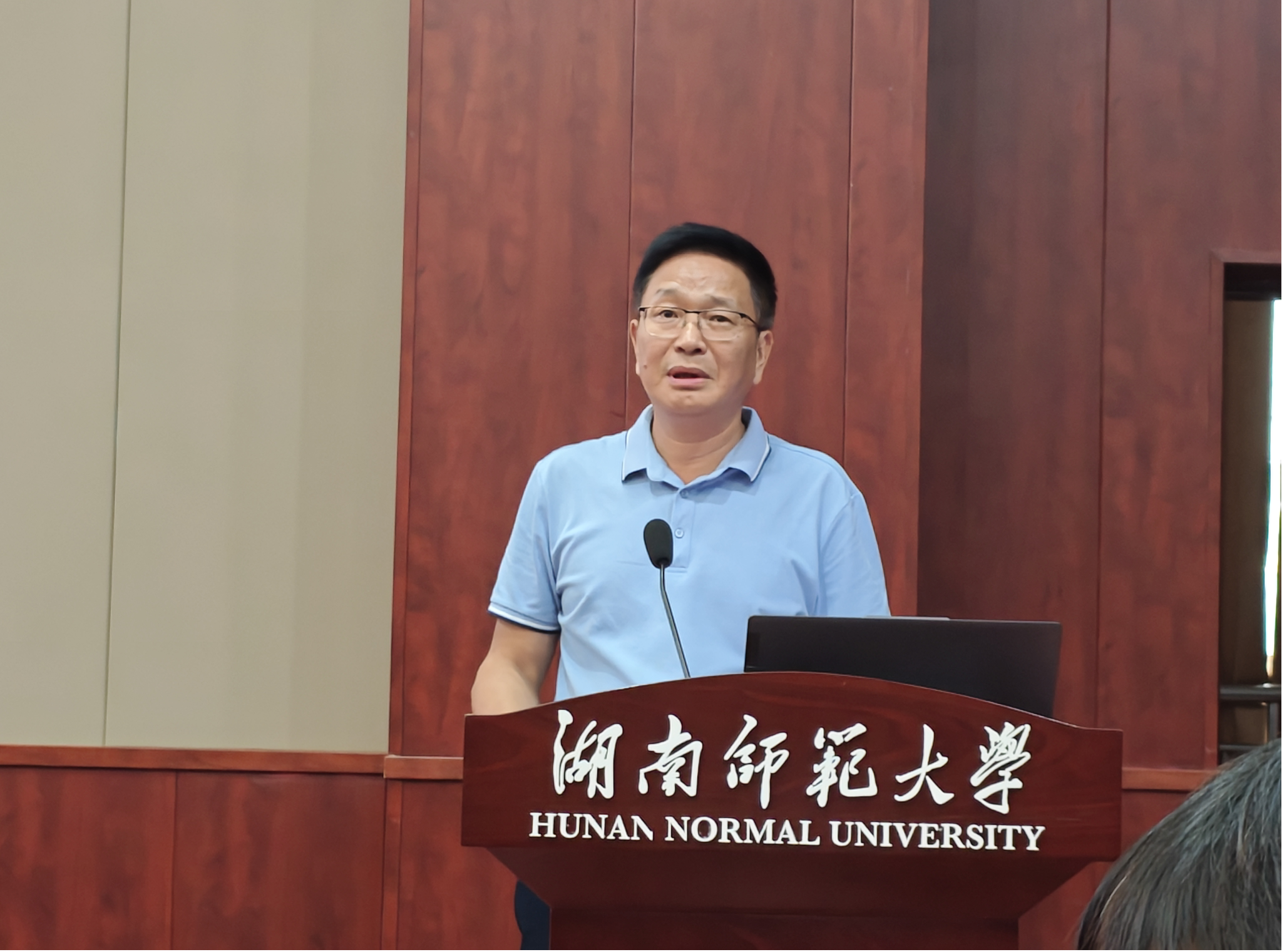院长杨荣华做“十四五”期间学科建设汇报,他从第五轮化学学科评估回顾、“十四五”期间化学学科建设情况、第六轮与第五轮学科建设情况对比和2025年下学期工作重心等四方面做汇报。