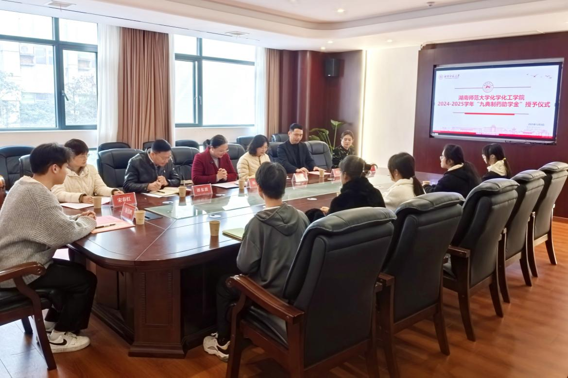 (通讯员 谭伟维)12月3日上午,我院在化学楼206会议室举行2024-2025学年度“九典制药助学金”授予仪式。仪式由副院长宋春红主持。九典制药人力资源总监杨洁、人才发展主管张叶,院党委书记谭东波、副书记周子虬、学工办主任欧阳唯一、资助专干朱伟鹏出席,全体获助学生参加。