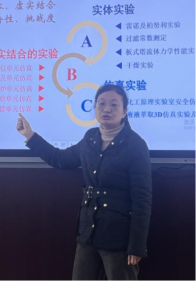 在兰支利教授简要开场后,三位主讲教师依次作专题分享。刘思洁老师以“具有地方特色的《化工工艺学》课程思政模式建设探索”为题,从思政融入的逻辑路径出发,系统阐述了如何将地方特色思政元素有机融入课程教学,并通过具体案例,展示了在培养学生职业道德、社会责任与家国情怀方面的实践做法。