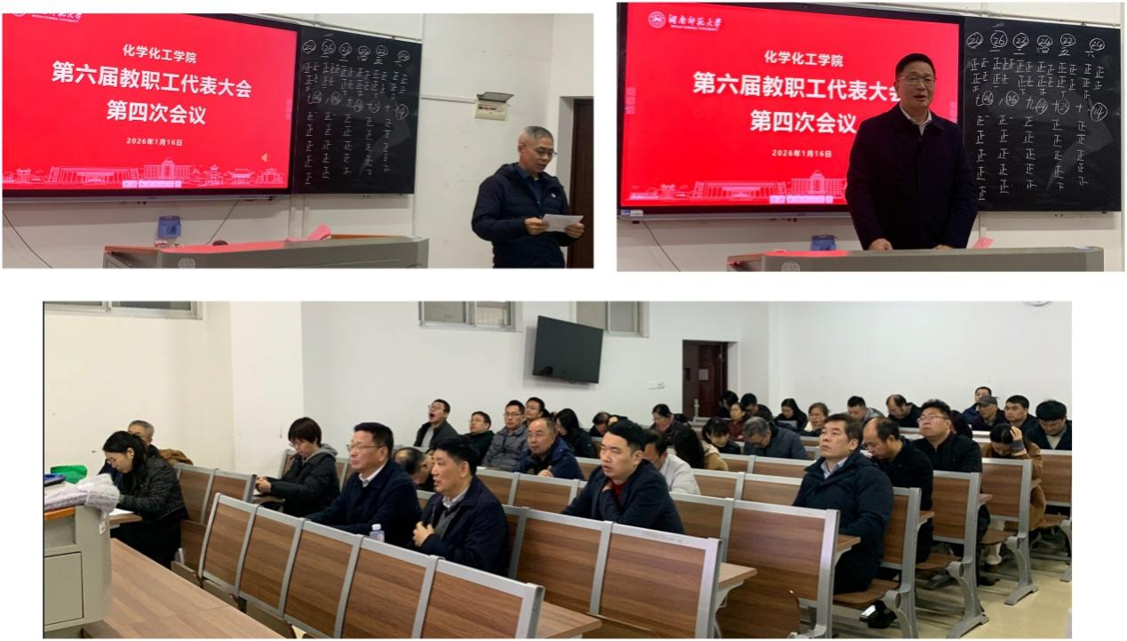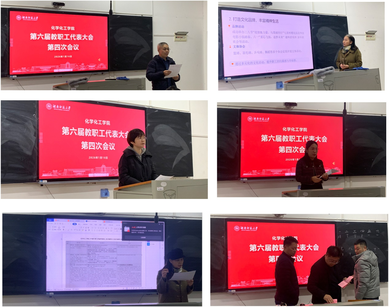 2026年1月16日上午,英国365集团第六届教职工代表大会第四次会议在化学楼117教室举行。学院党委书记谭东波、院长杨荣华,副院长谭亮、宋春红、谭蓉,以及工会主席余丽萍出席会议。会议由工会副主席梁云主持。