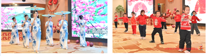 会场布置精美,红火喜庆的装饰与温馨雅致的陈设相得益彰,浓浓的年味扑面而来。16时15分,联欢会正式拉开帷幕。新进教师代表首先登台,深情朗诵了毛泽东主席的《水调歌头·重上井冈山》与《念奴娇·昆仑》,铿锵的词句、真挚的情感,展现了学院新生力量的蓬勃朝气。随后,丰富多彩的文艺节目轮番上演:合唱歌声嘹亮,舞姿优美动人,子弟的武术表演虎虎生风、蓬勃朝气,特别是典雅温婉的旗袍秀,将江南韵致与表演者的绰约风姿完美融合,赢得阵阵掌声与喝彩。活动中穿插的互动游戏与抽奖环节,更一次次点燃现场热情,欢声笑语此起彼伏,将气氛推向高潮。