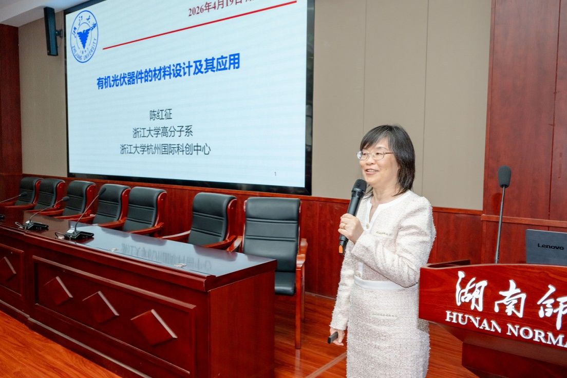 座谈结束后,我校举行了专题学术报告。浙江大学陈红征教授作了题为《有机光伏器件的材料设计及其应用》的学术报告,系统阐述了其团队在有机光伏材料领域的创新研究与产业化进展。郑强教授以《关于流变学的一二三》为题,用生动形象的语言阐释了流变学核心概念,并融汇科学研究、教育理念与人生体悟,报告深入浅出、引人深思。