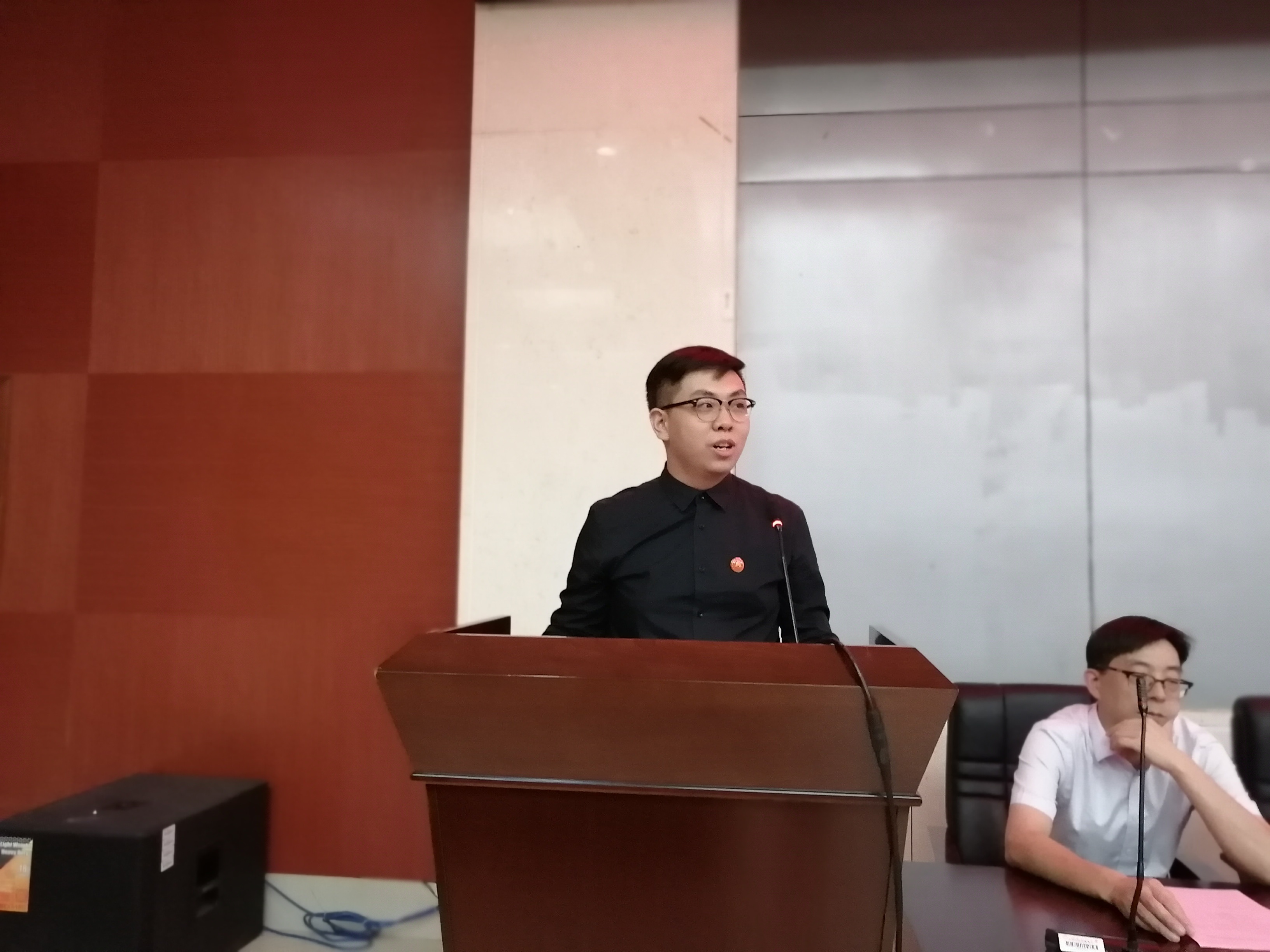 博士生代表蒋达波同学发言,他分享了自己硕士研究生生涯的收获并对研究生新生提出了较高的期许。随后是硕士研究生代表杨魏鹏同学发言,他结合自身经历分析了为什么要读研,和读研可以带来什么,他表示研究生的学习应该注重独立性和创新性。