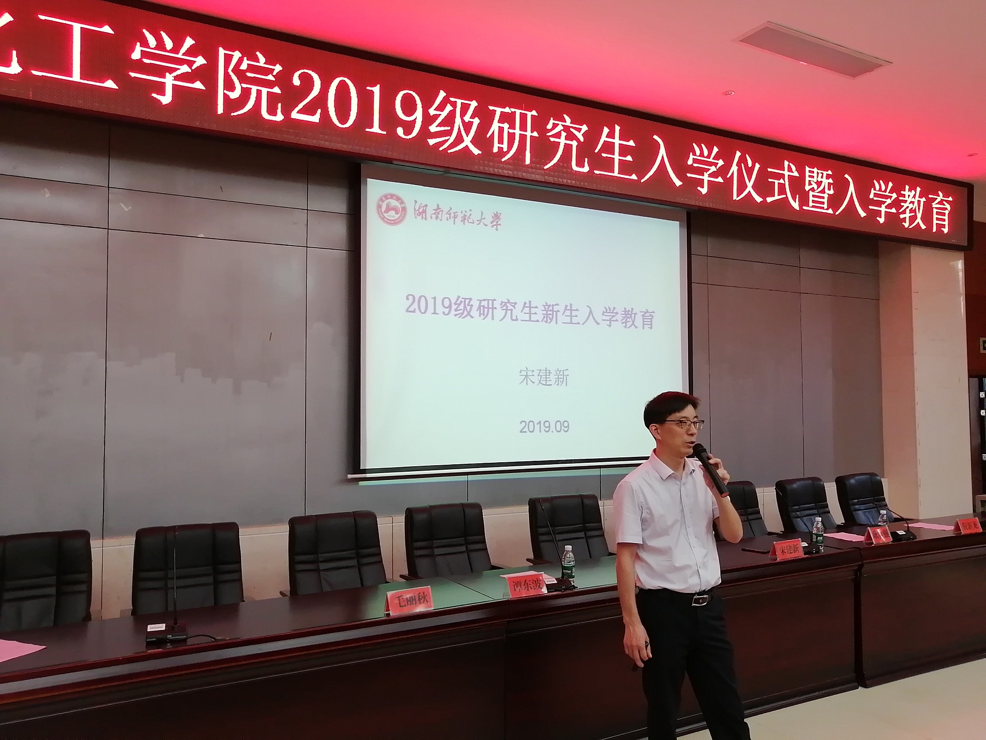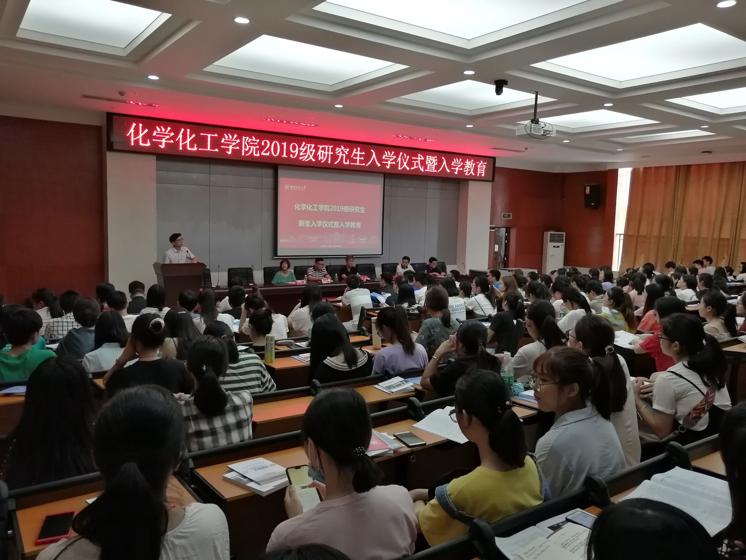 2019年9月11日下午15:00,英国365集团2019级研究生新生入学典礼暨新生入学教育在我院新楼二楼报告厅召开。出席此次会议的有:化学化工学院党委书记于风江、副院长宋建新、副院长谭东波、党委副书记耿自强、常务副主任毛丽秋、研究生导师代表倪新龙,以及2019级全体新生。会议由副院长宋建新教授主持。