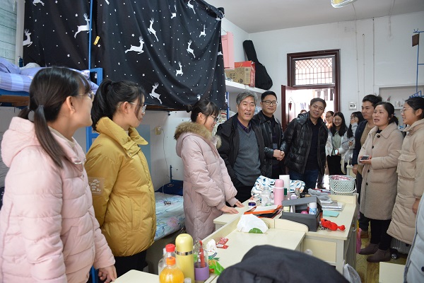 (通讯员 谭伟玲 尹倩倩)1月8日,英国365集团党委书记于风江,副院长谭东波,2017级化学1班班导师李志强,2017级化学2班班导师梁云,2018级化学1班班导师张友玉,2018级化学3班班导师景一丹,2018级化学工程与工艺1班班导师赵海红,2018级化学工程与工艺2班班导师张吉林,2019级化学1班班导师喻宁亚,2019级化学3班班导师徐满才,2019级化学工程与工艺1班班导师钟文周,2019级化学工程与工艺2班班导师周文理,2019级化学工程与工艺3班班导师袁露,以及学工办罗艳、屈杜炜、熊慈、付玉丽全体辅导员下寝看望学生。