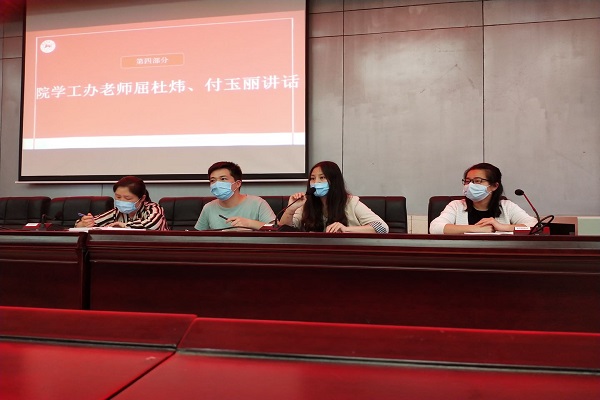 院团委书记屈杜炜、学工办熊慈、付玉丽对同学们在校期间的生活学习提出了具体要求,要求同学们生活上做好防护,不扎堆、不聚集,遵守学校规定,每日打卡,汇报健康情况及动向;要按时到学院签到,在规定时间内返回宿舍,做实验时在导师指导下完成实验,注意用水、用电等安全;严谨酗酒、下河洗澡、聚会等,注意自身安全。