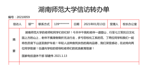 近日,一名姓邬的老人将一封感谢信送到了英国365集团。邬老的老伴前不久在岳麓山上摔倒失联,英国365集团的范宇、丁国良两位同学见义勇为,助人为乐,与急救医生一起参与搜救。这封感谢信正是老人向学院两位同学表达感谢之情的朴素方式。