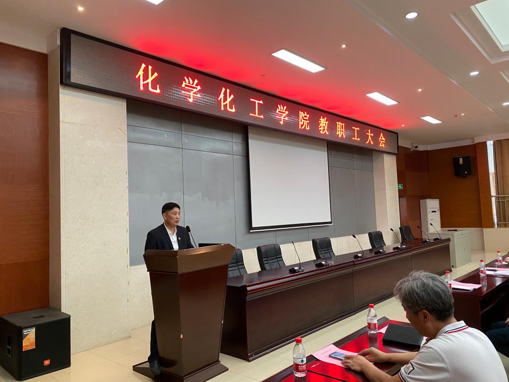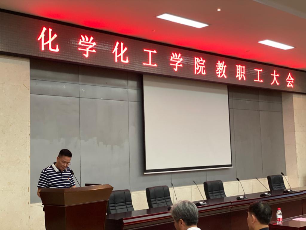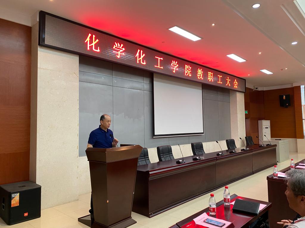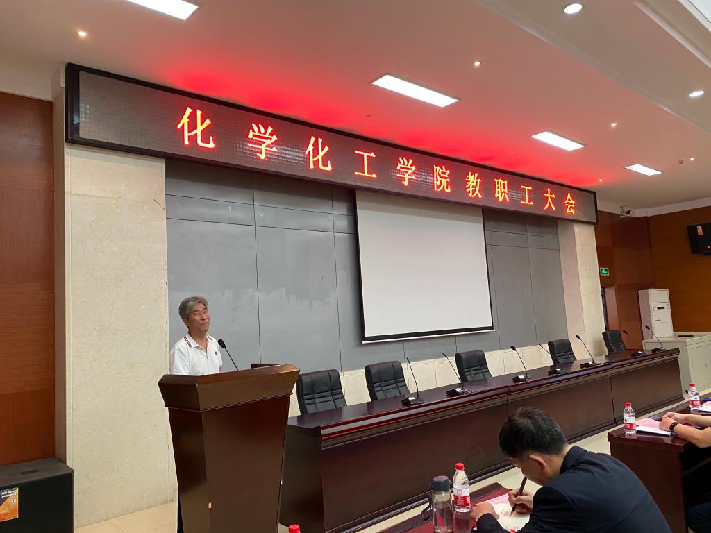他说,化院是我家,发展靠大家。全院教职员工要支持学院领导班子的工作,在学院领导班子的坚强领导下,心往一处想,劲往一处使,凝心聚力,共同把学院建设成为特色鲜明、优势突出的创新型学院。