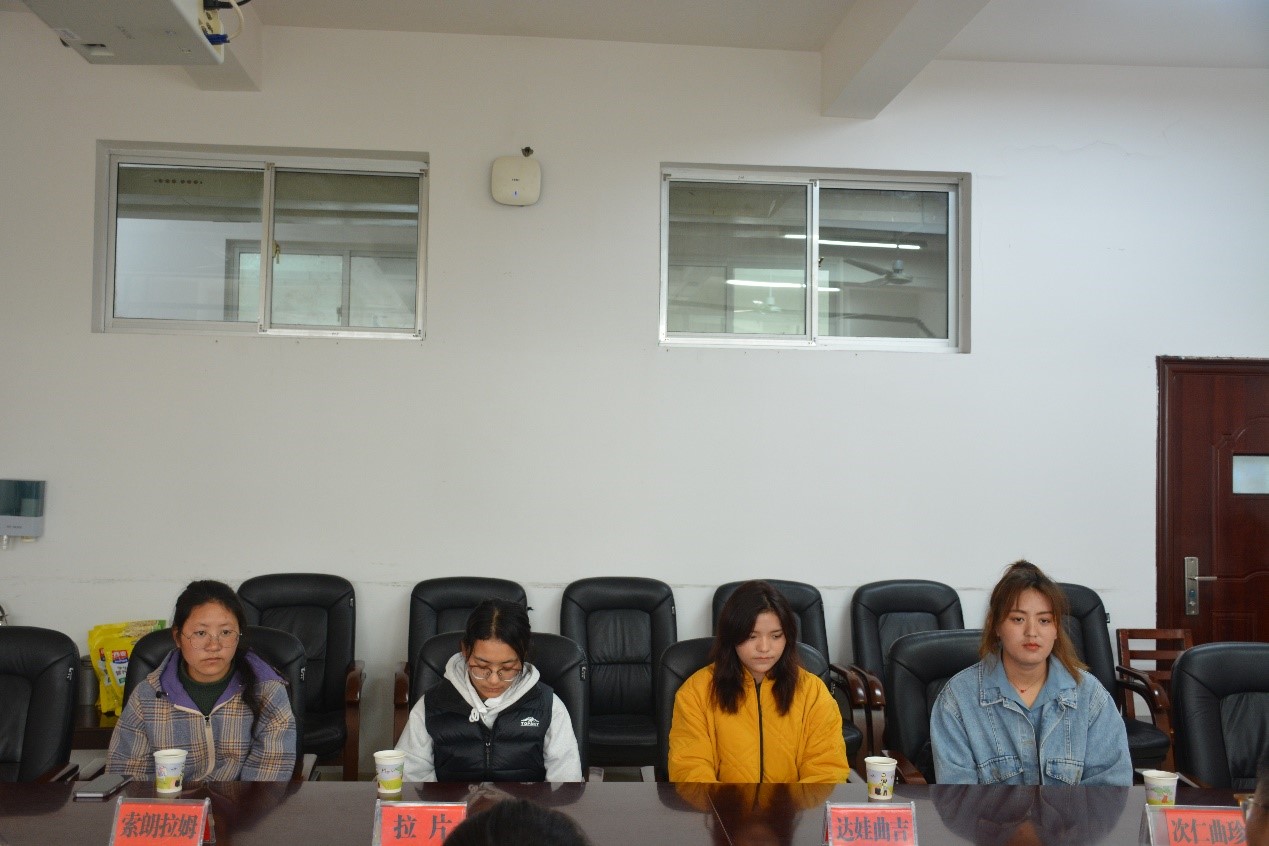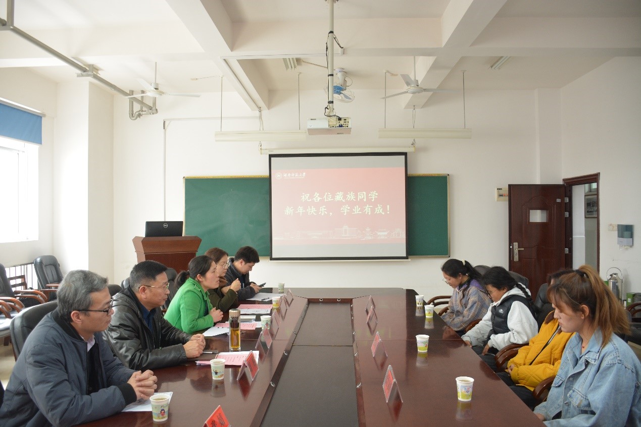 四位藏族同学分别从教学、生活、民族文化等方面分享了自己在大学里的所学所获、所思所感,对良好的学习氛围、和睦的民族团结氛围表达了热爱之情,同时也交流了自己在学业困惑、择业迷茫、校园服务等方面遇到的问题。院党委副书记罗艳针对同学们提出的问题一一给予了解答,并勉励同学们在湖师大锤炼过硬本领,自觉为国家和中华民族的发展而努力。