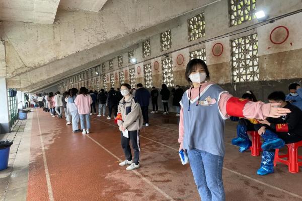 在此次核酸检测中,志愿者们主要负责田径场门口场所码查验、出入口引导以及核酸检测处的秩序维护。志愿活动现场负责人黄璞提前做好志愿者的分工安排,全体志愿者以饱满的精神和积极的态度投入抗疫服务中,不畏困难、不辞辛苦地坚守岗位,为学校第七轮核酸检测进行提供了保障。