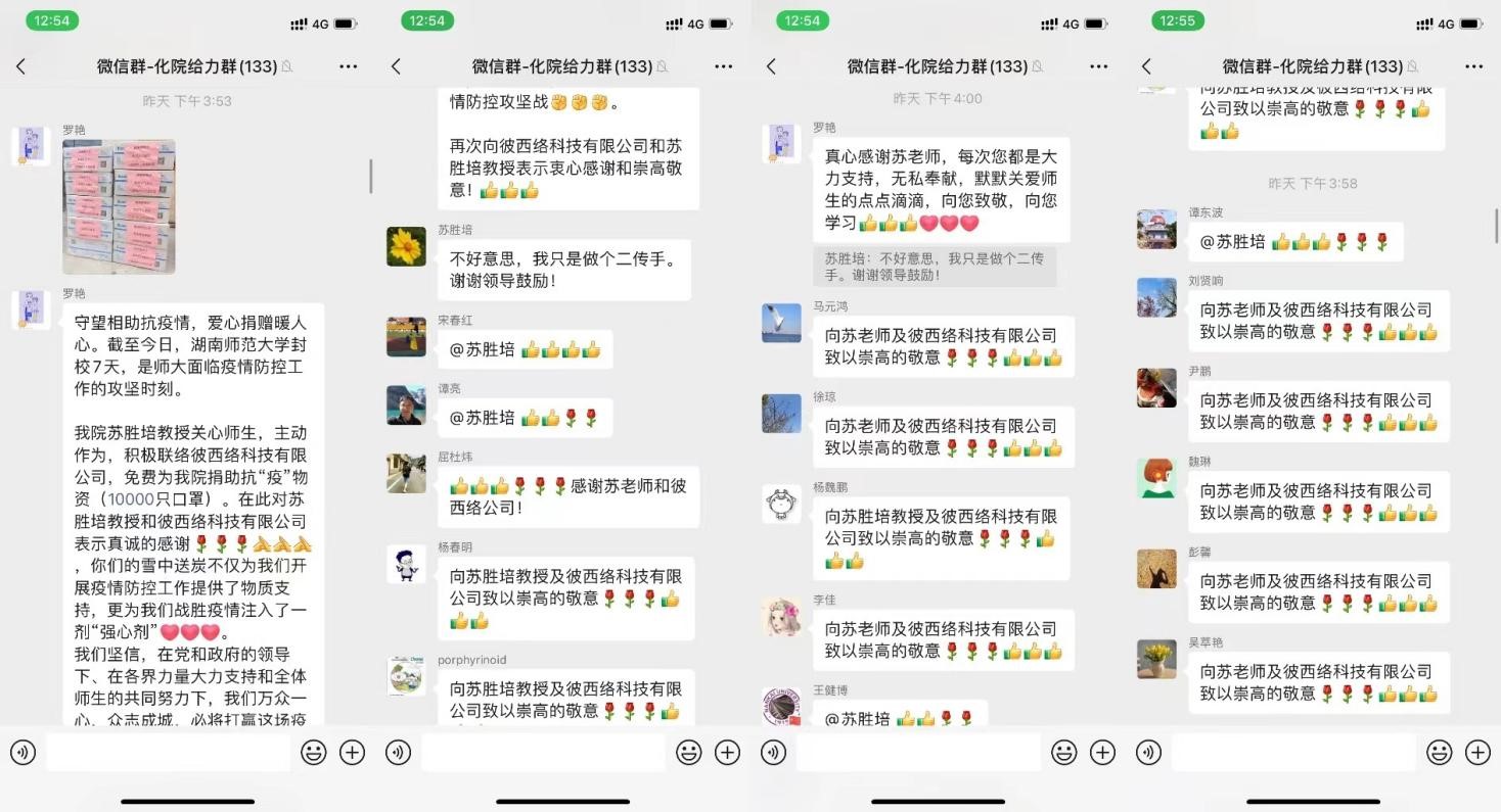 广州彼西络科技有限公司是一家涉及生物、化学、医疗等方面的综合型企业,是国际型进出口实验室产品渠道供应商。公司方面负责对接的陈女士表示:“公司一直心系湖南,心系长沙,心系我们的老师和同学,一点心意,望疫情早日过去!”在得知广州彼西络科技有限公司和苏胜培教授这一雪中送炭的善举后,学院全体师生为广州彼西络科技有限公司送上感谢信,并对苏胜培教授和广州彼西络科技有限公司表示感谢并致以崇高的敬意。