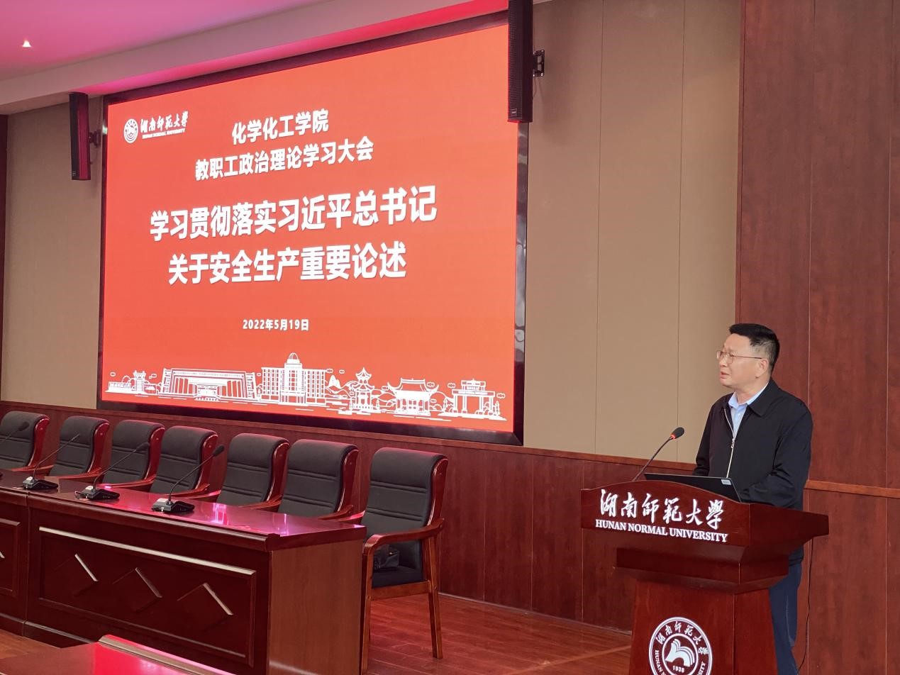 2022年5月19日下午,英国365集团教职工政治理论学习大会在化学楼达维康报告厅举行,会议由院党委书记谭东波主持。
