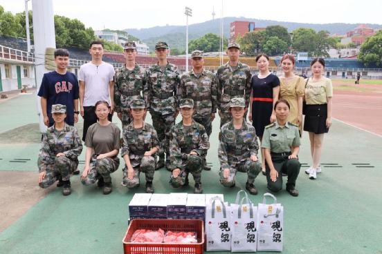 副书记段婷一行还为学员们带来了牛奶、西瓜和奶茶等慰问品,向学员们送上学院的关心和温暖。嘱咐学员们在集训之余也要照顾好身体,注意防暑,以更好的姿态圆满完成好学校2022年新生军训工作,充分展现化工学子的精神面貌,为学院增光添彩。