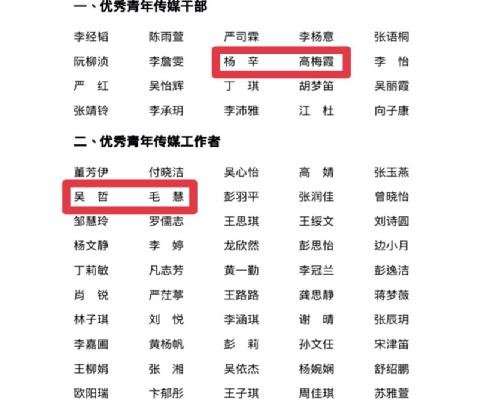 此外,我院青年传媒中心策划的“快乐周末谈”系列微信推送被评为校十佳网络文化产品;在青年传媒十佳和优秀个人评选中,我院周储言同学被评为十佳青年通讯员,杨辛、高梅霞两位同学被评为优秀青年传媒干部,吴哲、毛慧两位同学被评为优秀青年传媒工作者,唐永荭、赵宁宁同学被评为优秀青年通讯员。