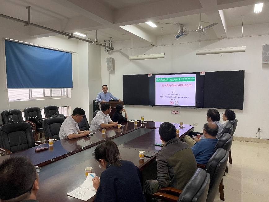 首先由王炜教授及杨小平教授就本课题特色工作进行介绍。王炜教授带来题为《湖南特色中药民族药物研究》的报告,就中药民族药物药效物质基础研究、中药活性筛选新方法、中药活性成分靶向增效研究、中药质量标准研究等内容与大家一起分享。杨小平教授带来题为《小分子靶向药物作用机制及研究》的报告,介绍了双胍类小分子抗肿瘤机制、发展及临床转化等内容。
