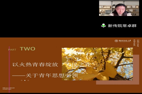 常卓群以《以青春之力,谱盛世华章》为主题,勉强广大青年在青春的赛道上跑出最好的成绩。她从青年工作的地位,青年思想的引领以及青年与时代的深刻关系等方面对宣讲主题进行剖析。党中央高度重视青年工作,始终将青年工作摆在重要战略位置,充分肯定了青年在国家富强、民族复兴征程中的重要作用。她勉励青年学子保持对远大理想和奋斗目标的清醒认识和执着追求,学习领会新时代党的创新理论,在政通人和、繁荣昌盛的伟大时代,不辜负时代重托和党的教诲,以积极的奋斗姿态苦干实干,努力成长为一个“有理想,敢担当,能吃苦,肯奋斗”的好青年,用实际行动为实现中华民族伟大复兴做出贡献。